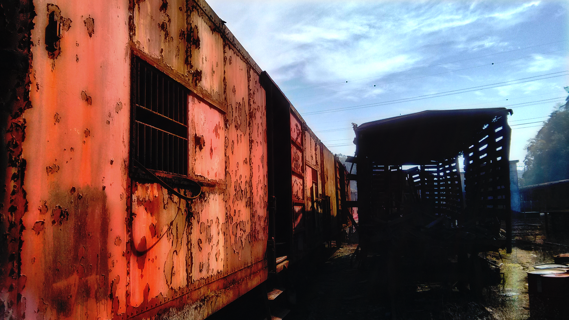 Старые ржавые вагоны - 1920x1080