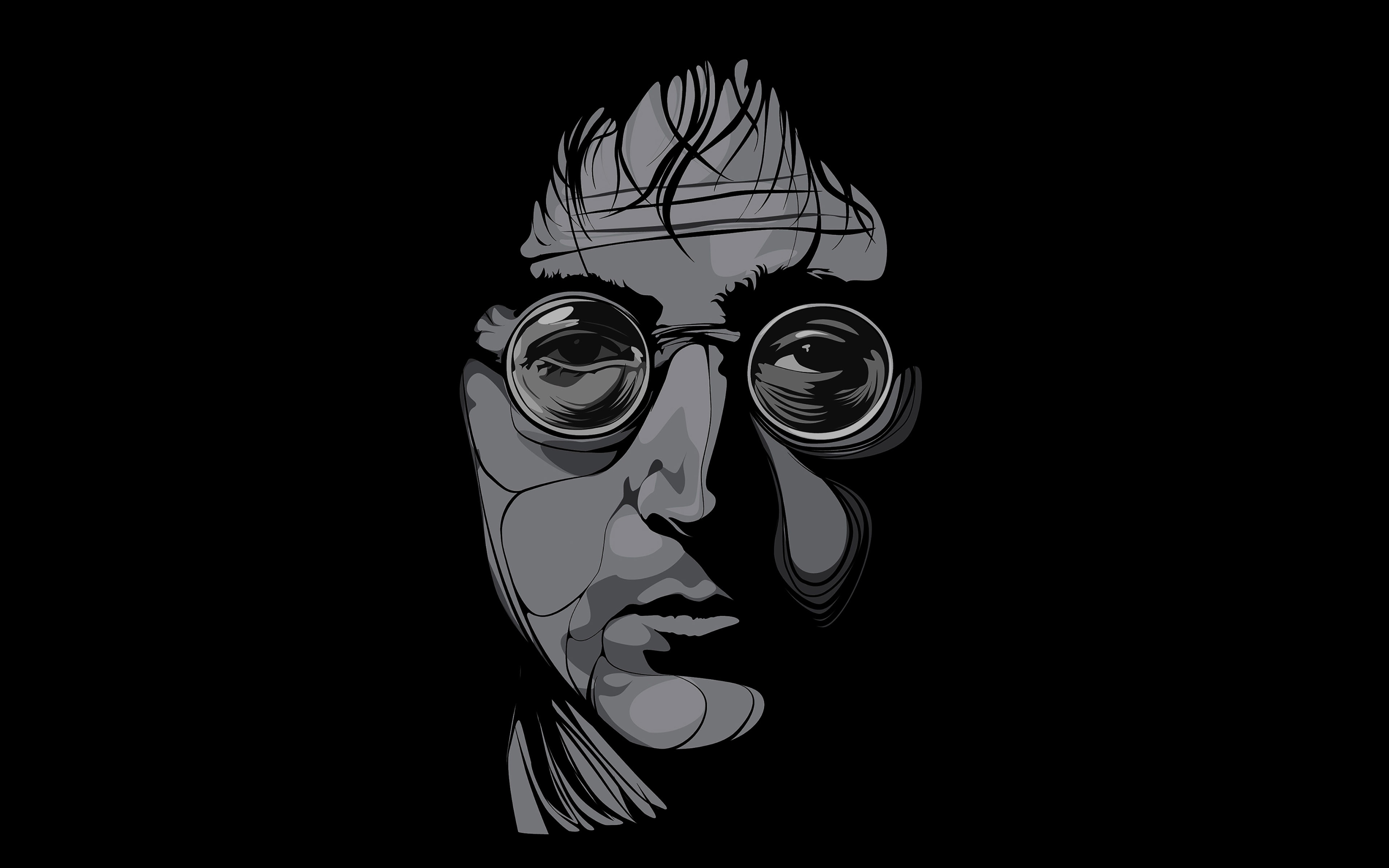 Нарисованный Джон Леннон на черном фоне - 3840x2400