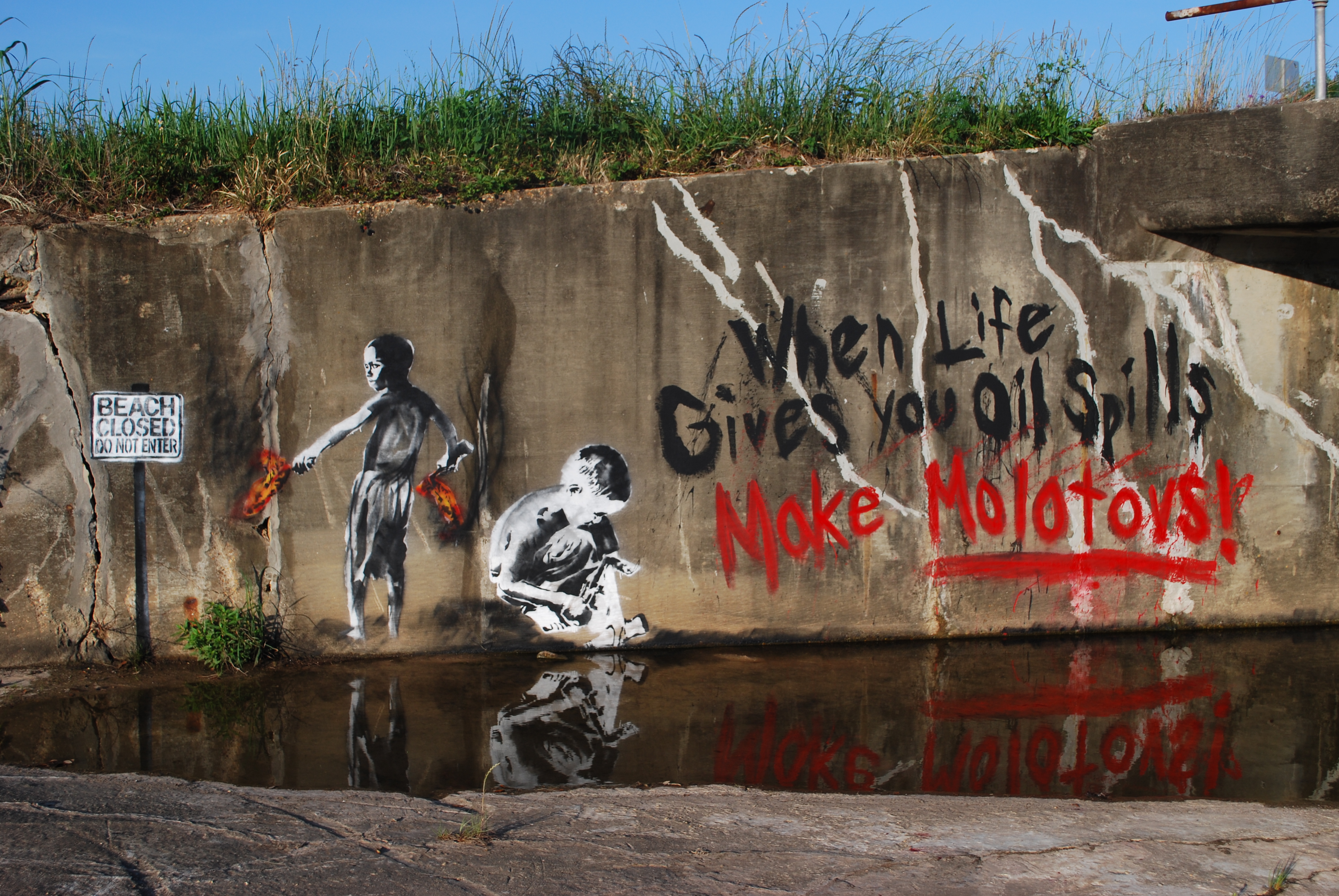 Нарисованная на стене маленькая девочка с мыльными пузырями