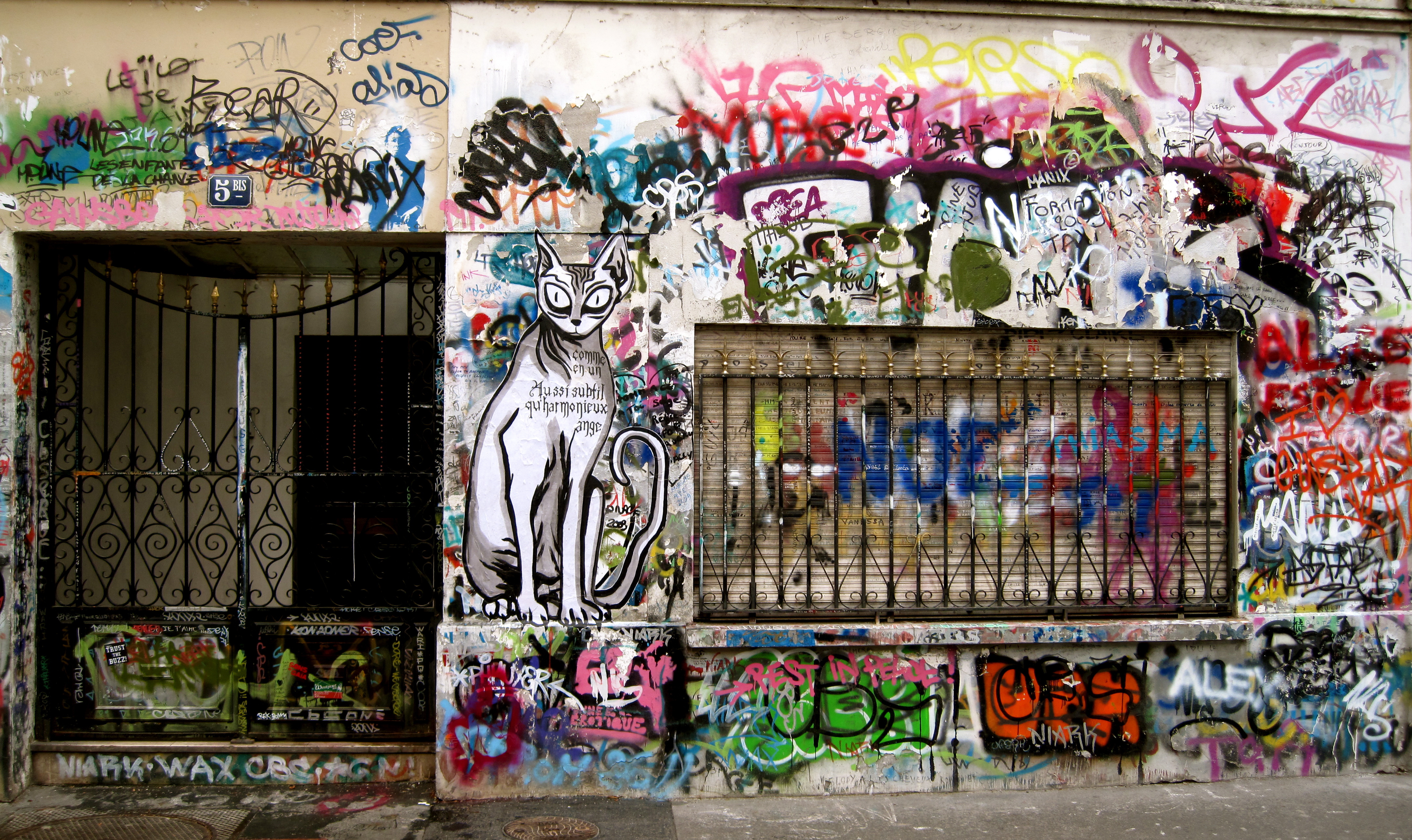 Нарисованная на стене маленькая девочка с мыльными пузырями