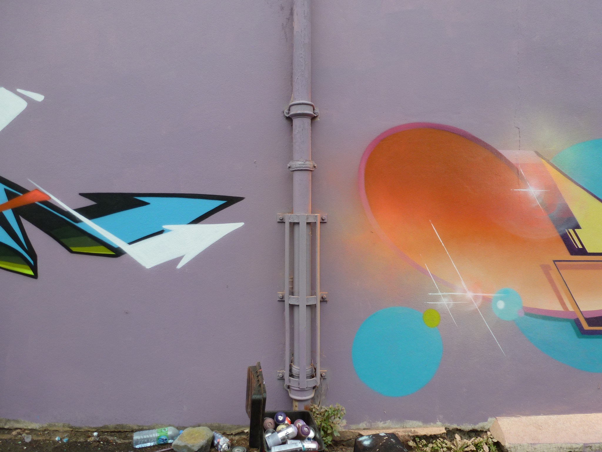 Нарисованная на стене маленькая девочка с мыльными пузырями