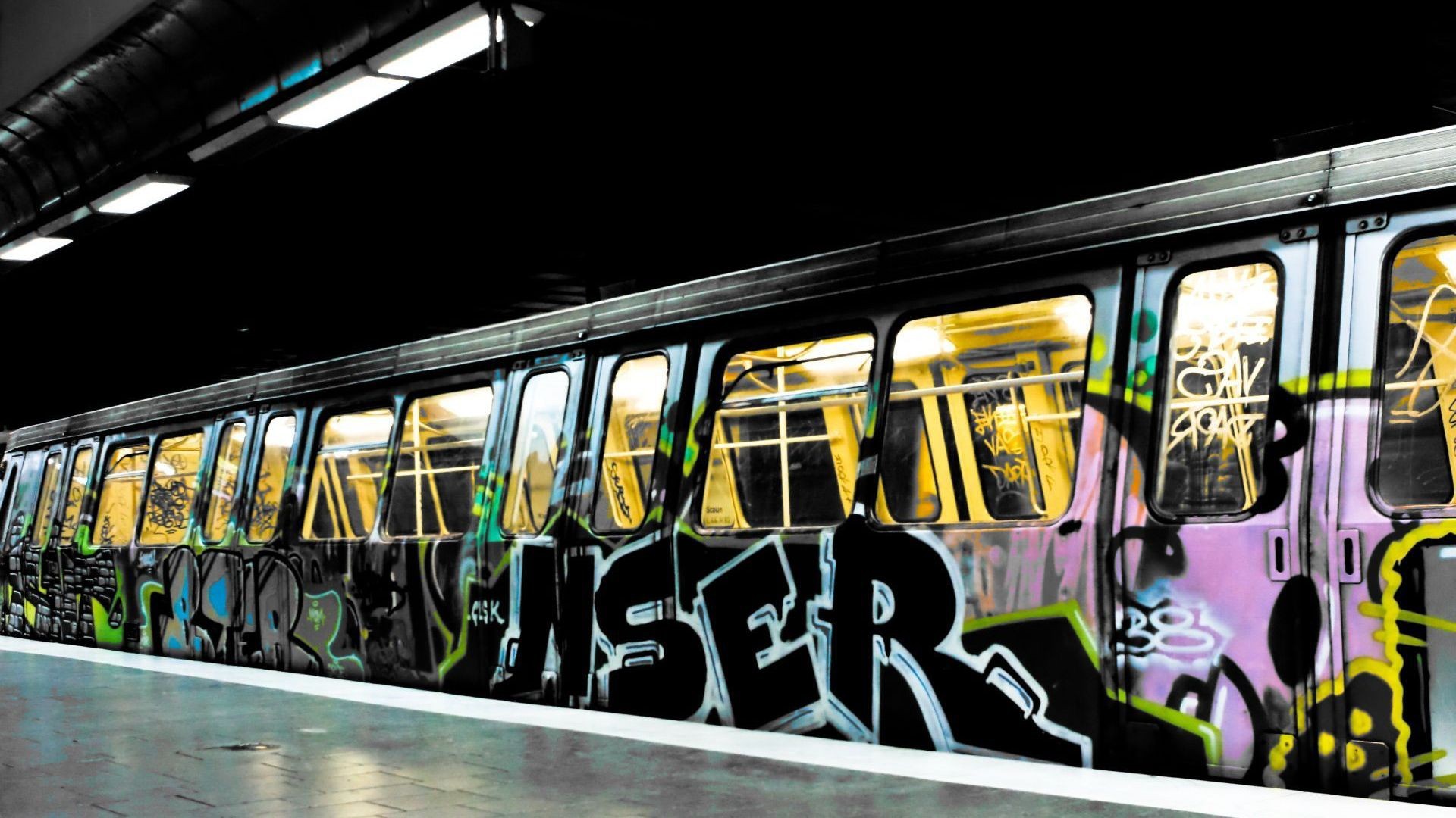 Нарисованная на стене маленькая девочка с мыльными пузырями