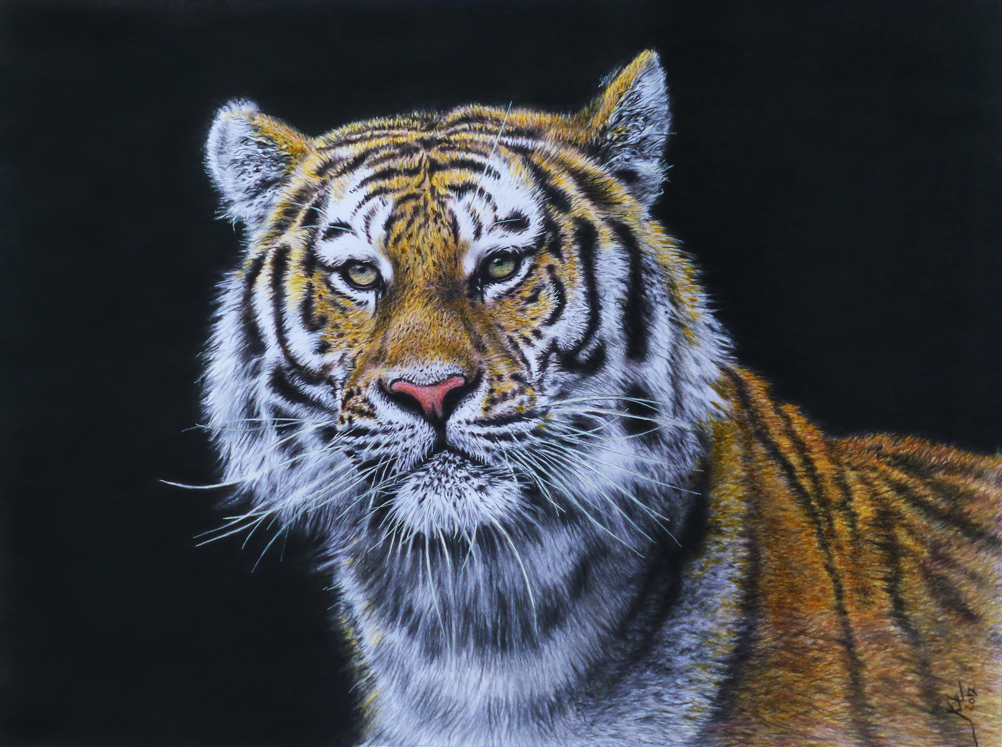 Красивый нарисованный тигр на черном фоне - 4244x3164