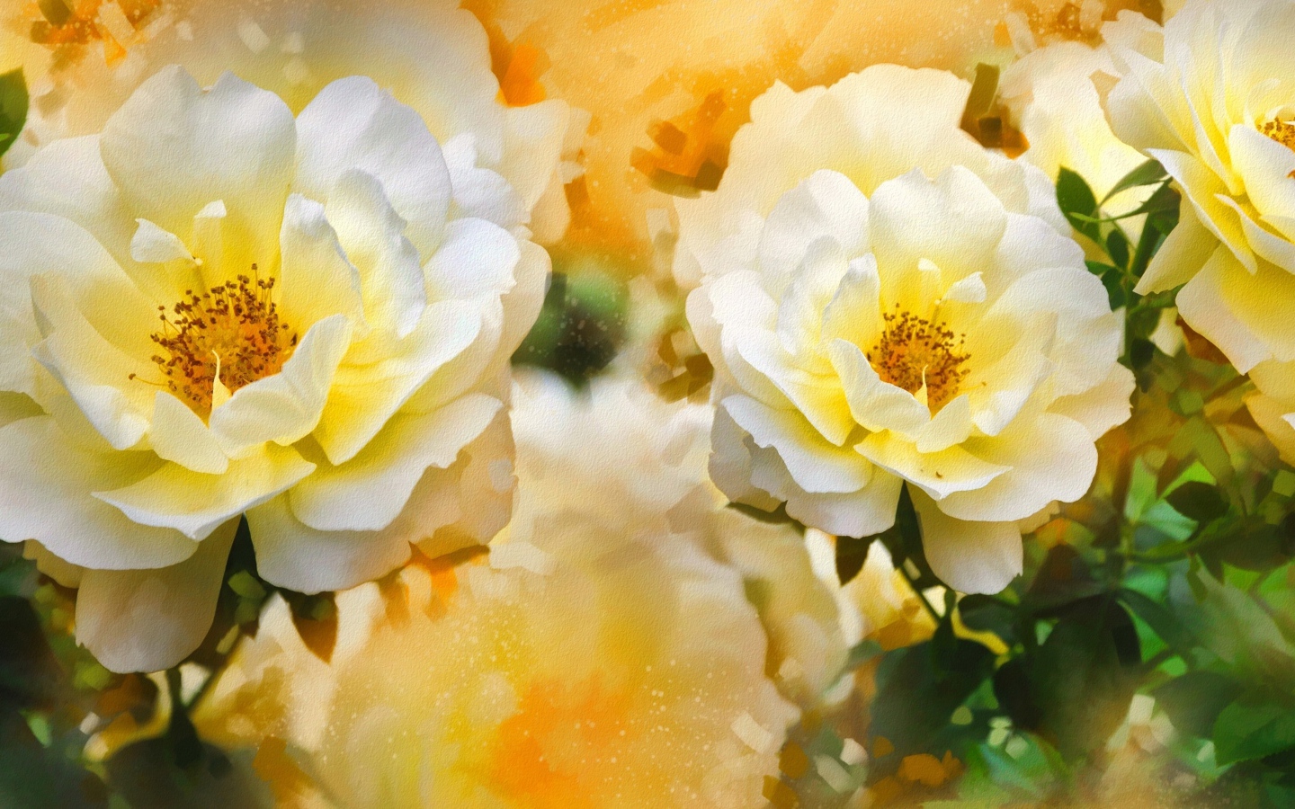 Красивые нарисованные распустившиеся белые розы Обои для рабочего стола 1440x900