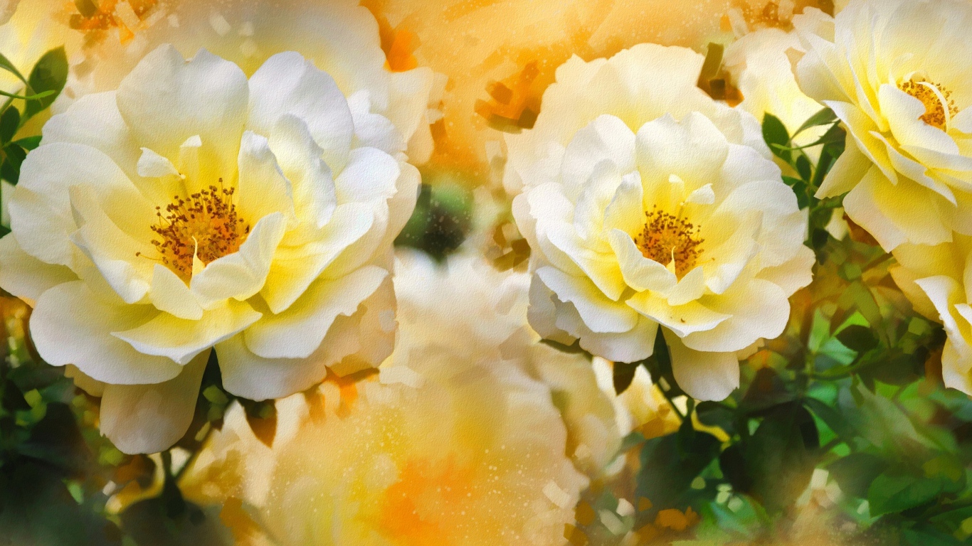 Красивые нарисованные распустившиеся белые розы Обои для рабочего стола 1366x768