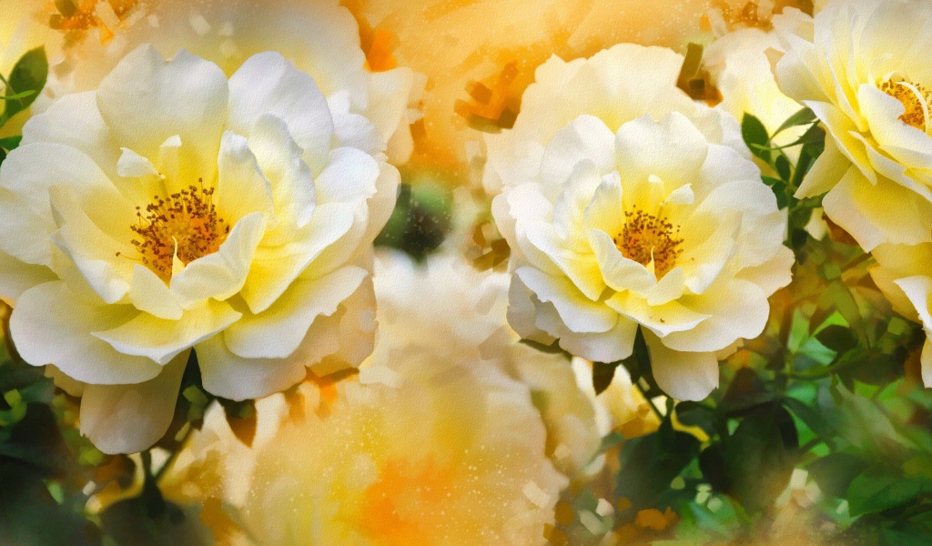 Красивые нарисованные распустившиеся белые розы Обои для рабочего стола 1024x600