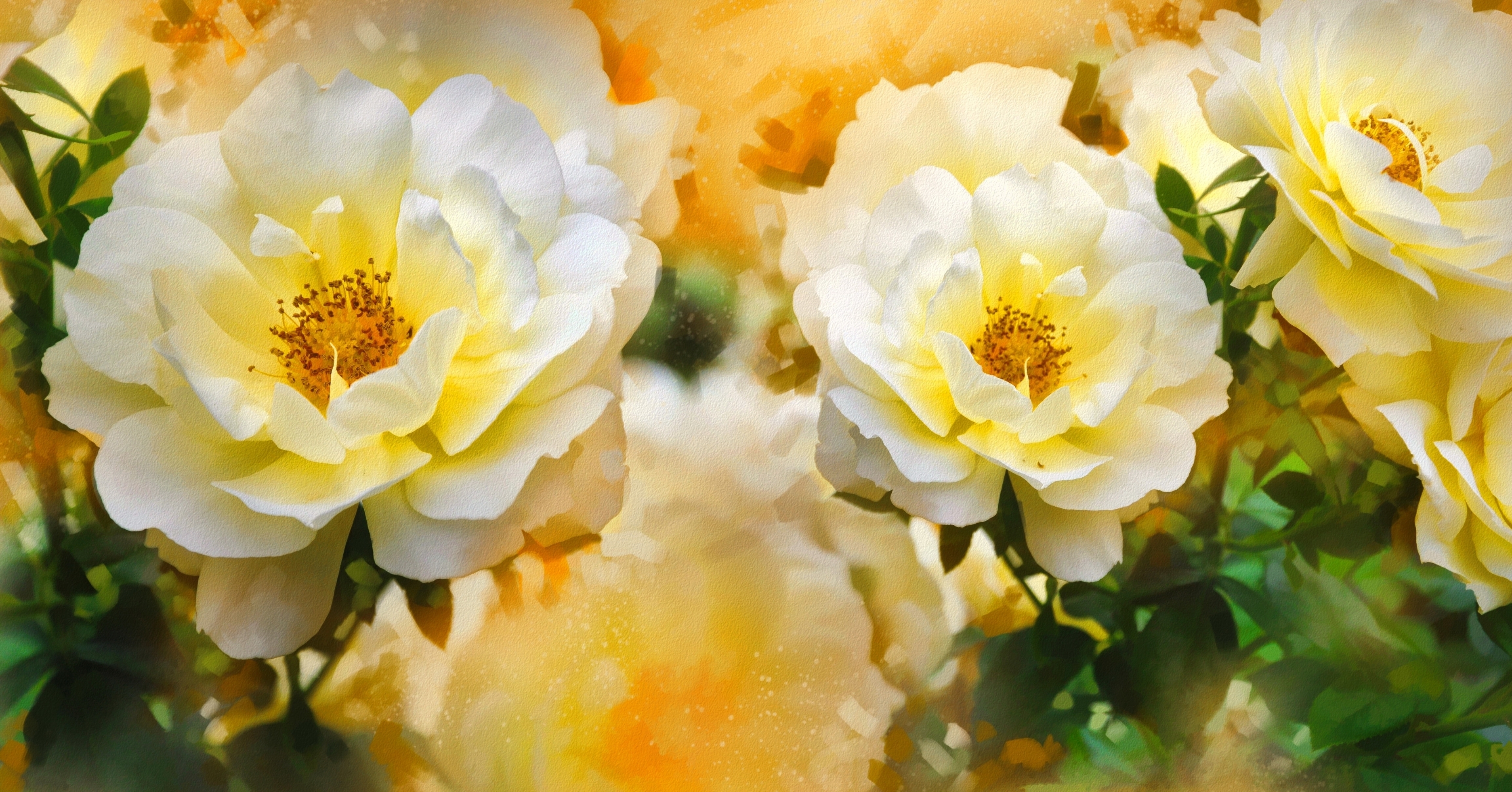 Красивые нарисованные распустившиеся белые розы - 3744x1960