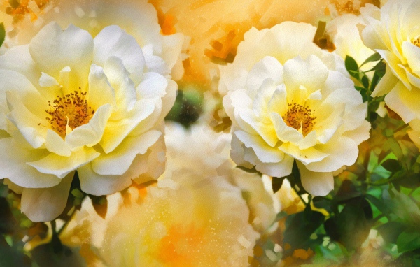 Красивые нарисованные распустившиеся белые розы Обои для рабочего стола 600x382