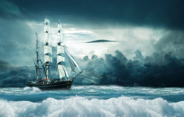 Нарисованный корабль в бушующем море Обои для рабочего стола 600x382