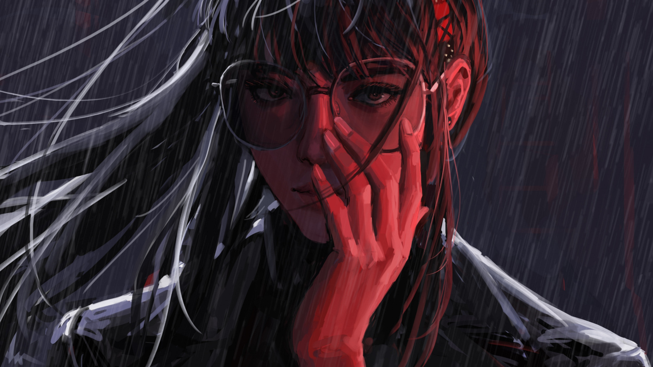 Нарисованная девушка в очках под дождем Обои для рабочего стола 1280x720