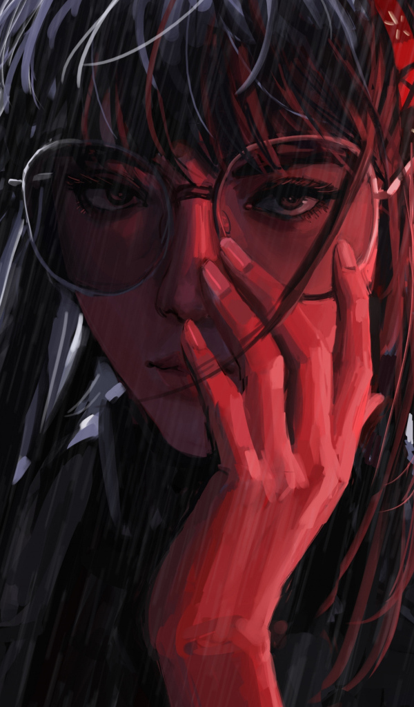 Нарисованная девушка в очках под дождем Обои для рабочего стола 600x1024