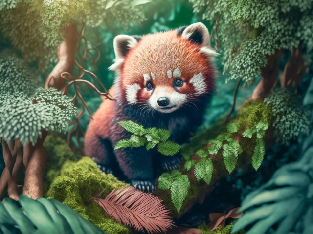 Нарисованная красная панда на ветке дерева - 3500x2333
