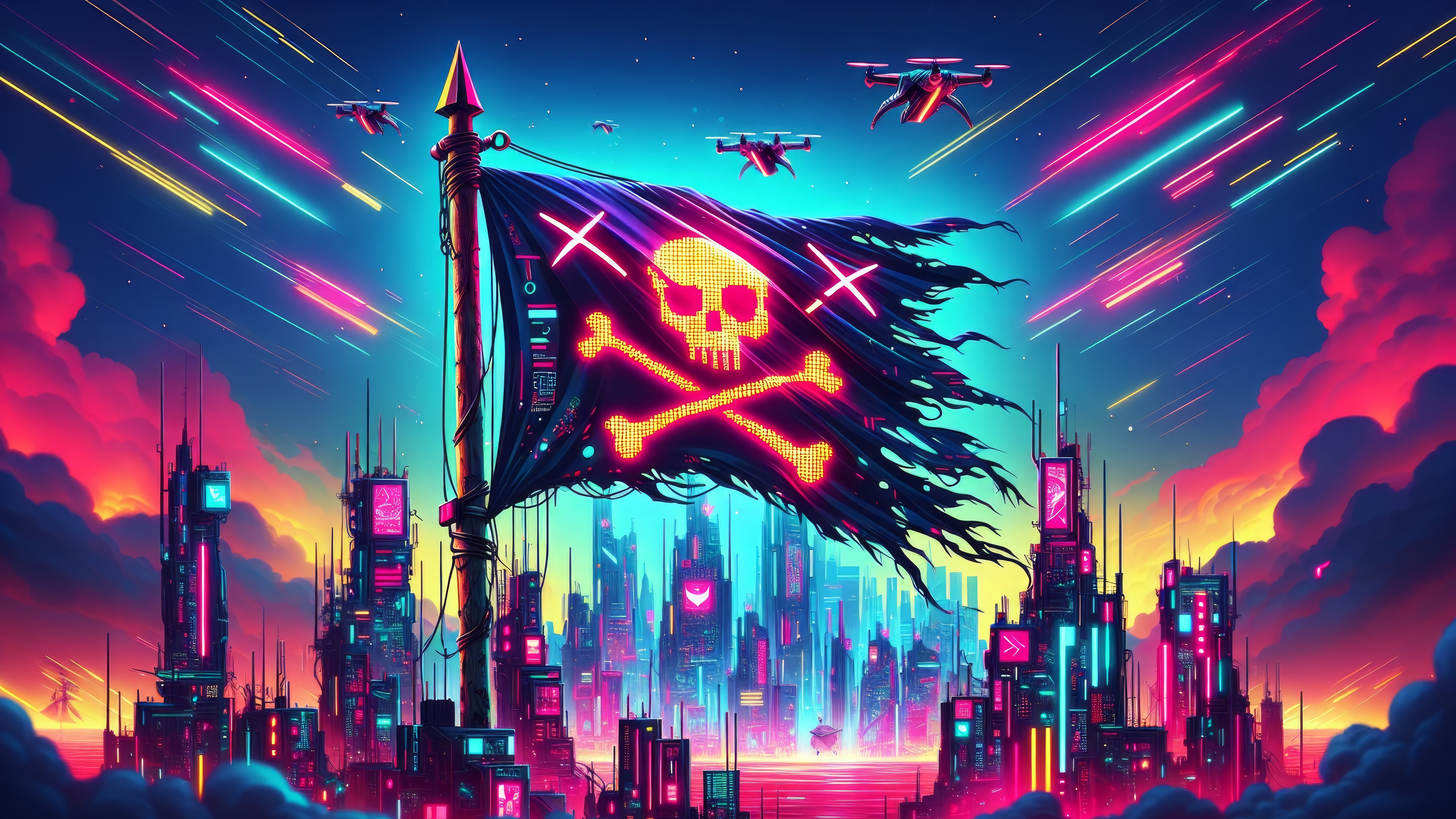 Пиратский флаг над городом - 3840x2160