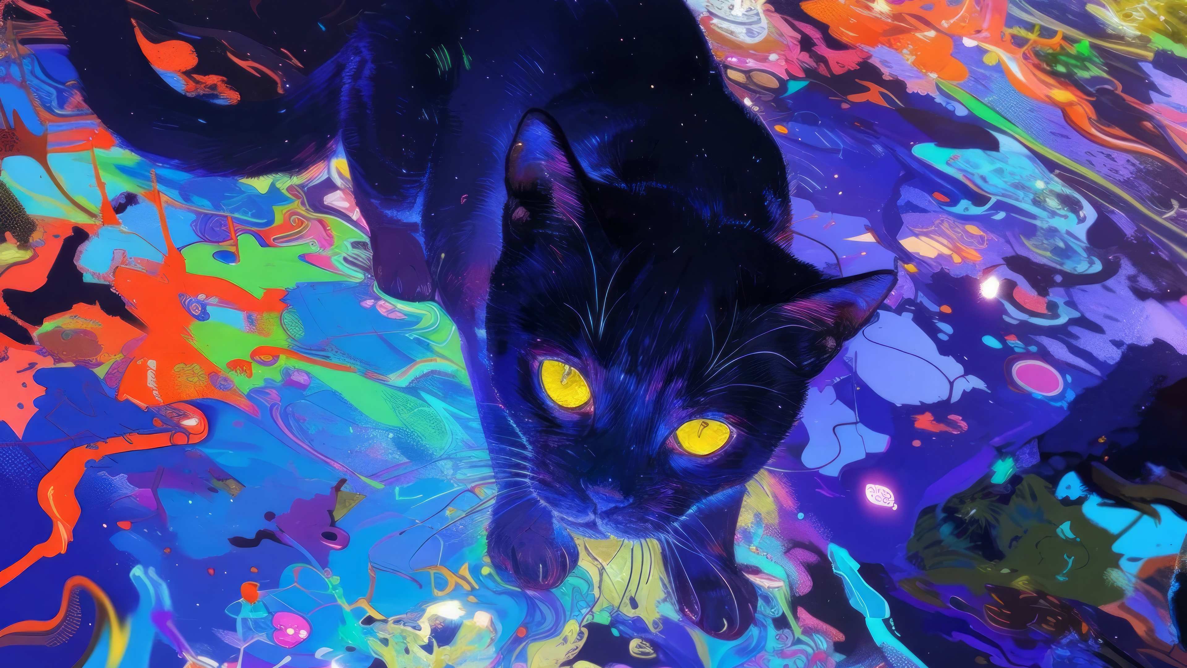 Нарисованный черный кот с желтыми глазами - 3840x2160