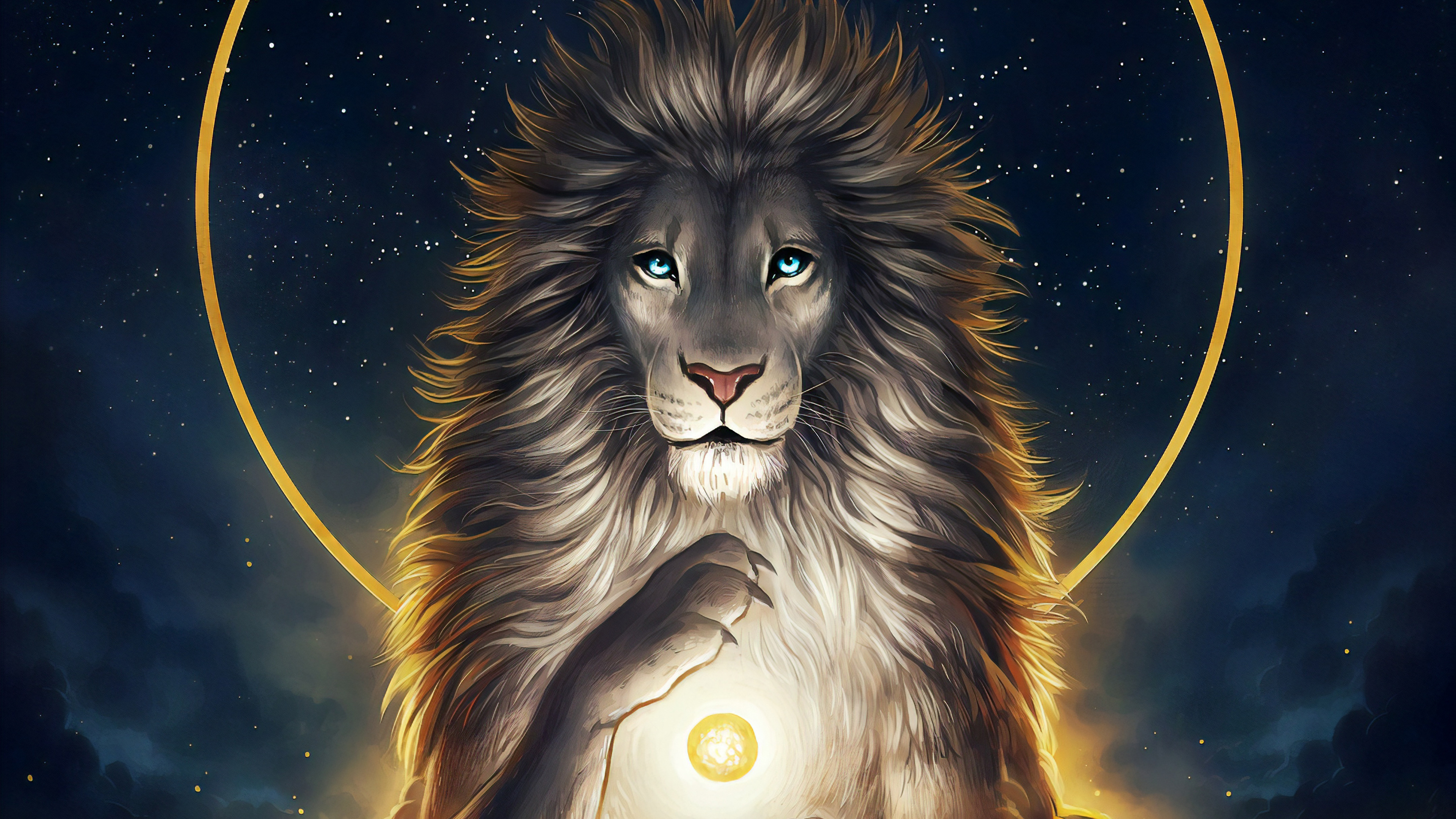Нарисованный голубоглазый лев на фоне неба - 3840x2160