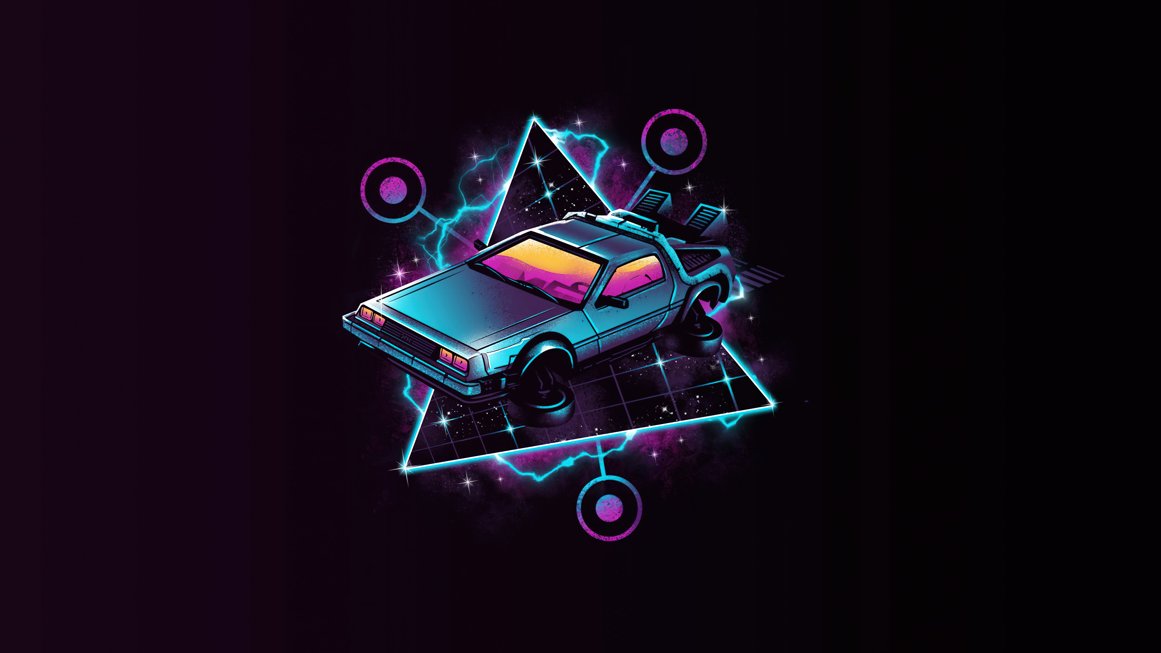 Нарисованный автомобиль на черном фоне - 3840x2160