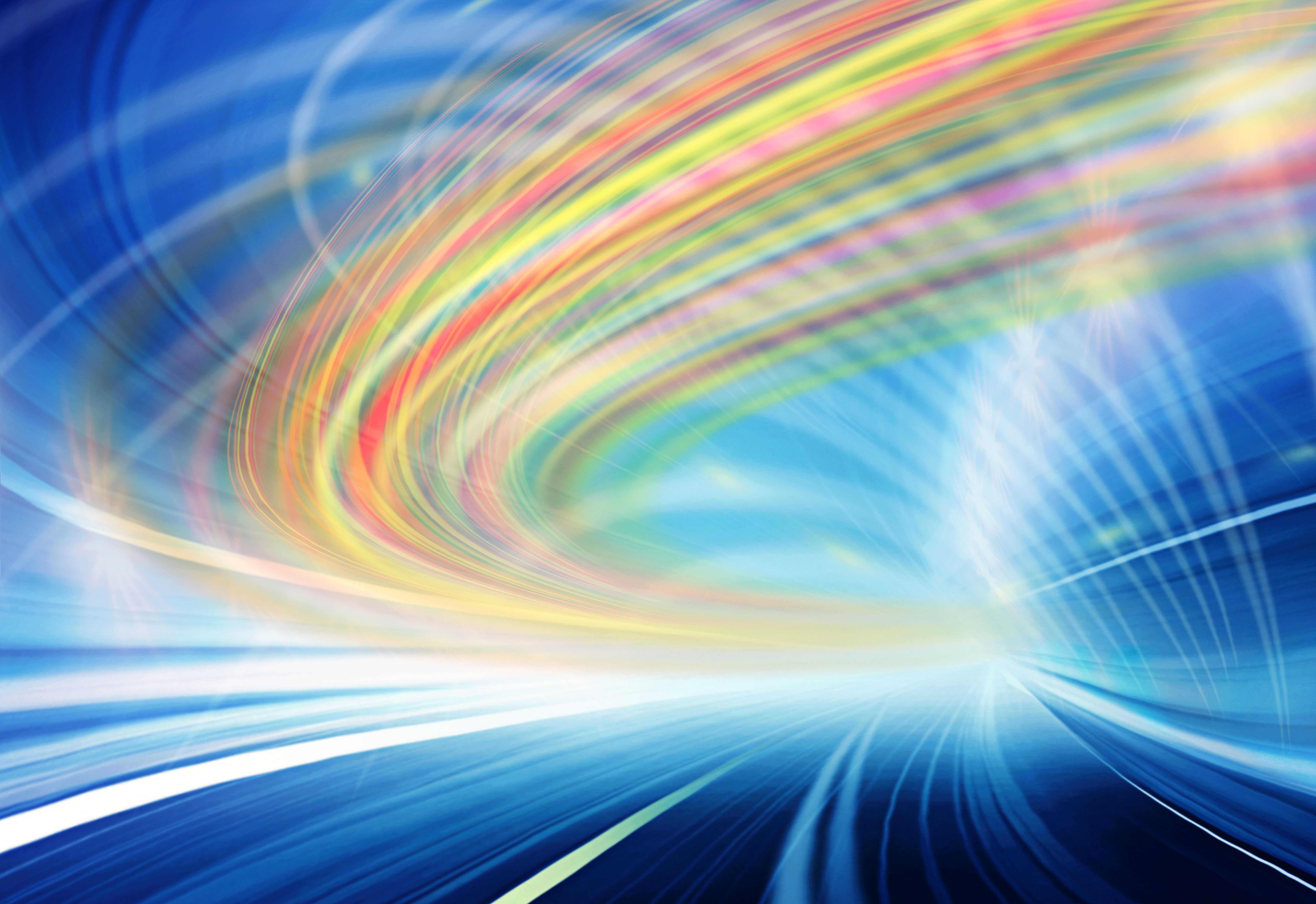 Радужные абстрактные волны на голубом фоне - 7694x5284