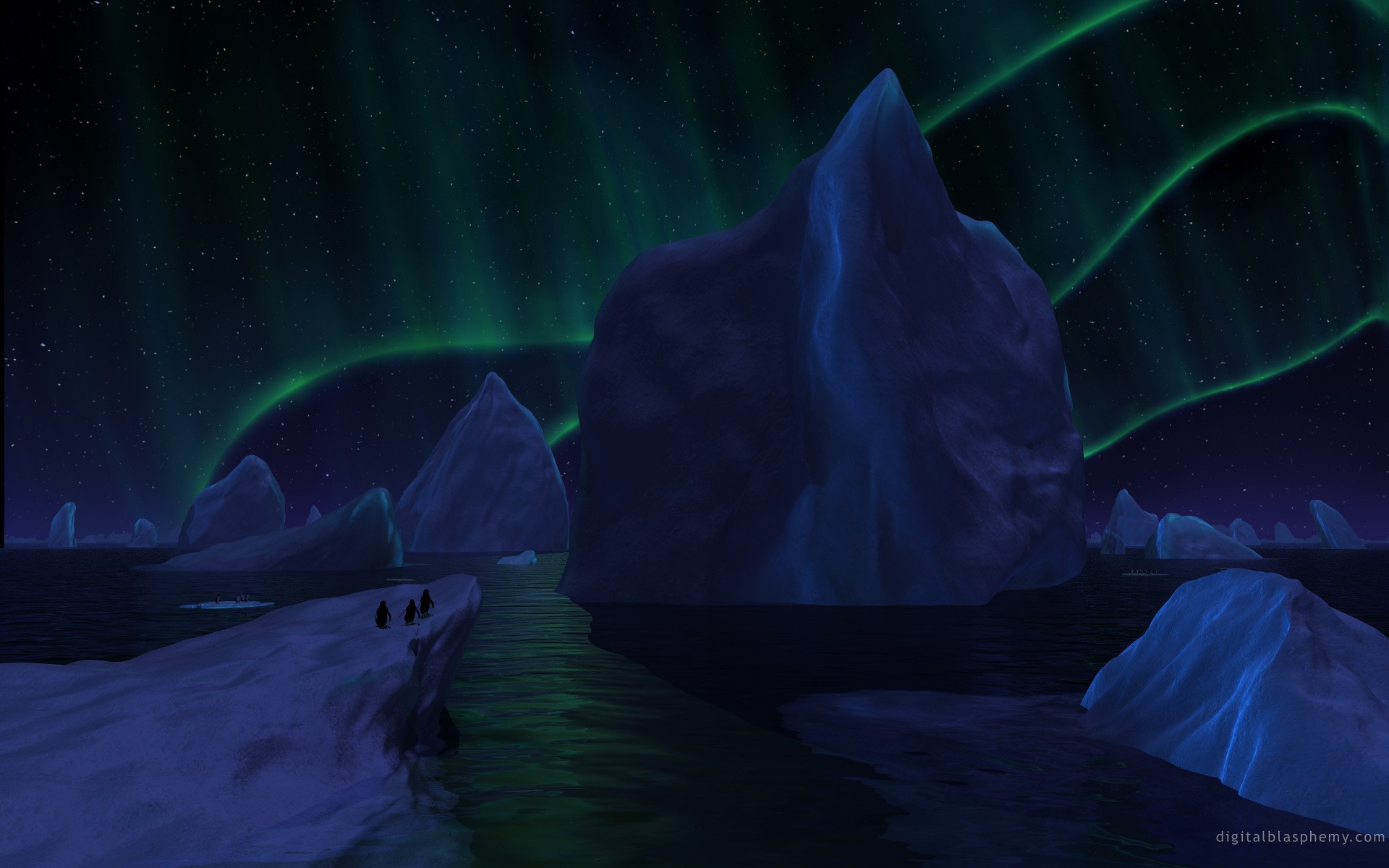 Айсберги под северным сиянием - 1920x1200