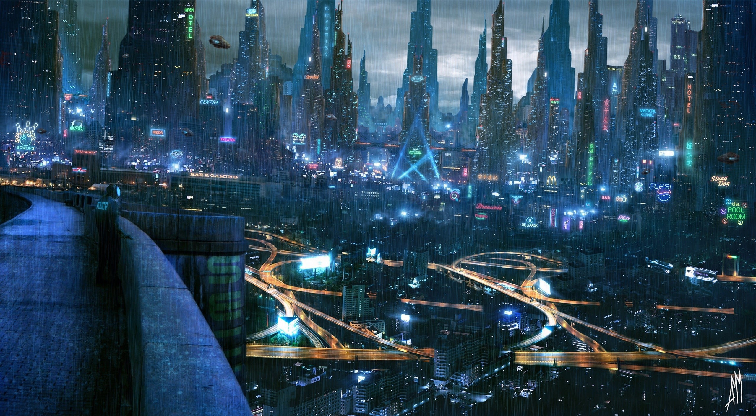 Дождь в городе будущего - 2558x1410