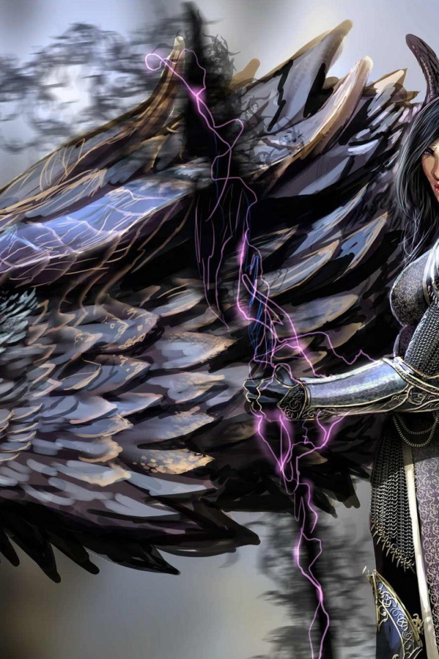 Аниме девушка держит власть над драконом Обои для рабочего стола 640x960