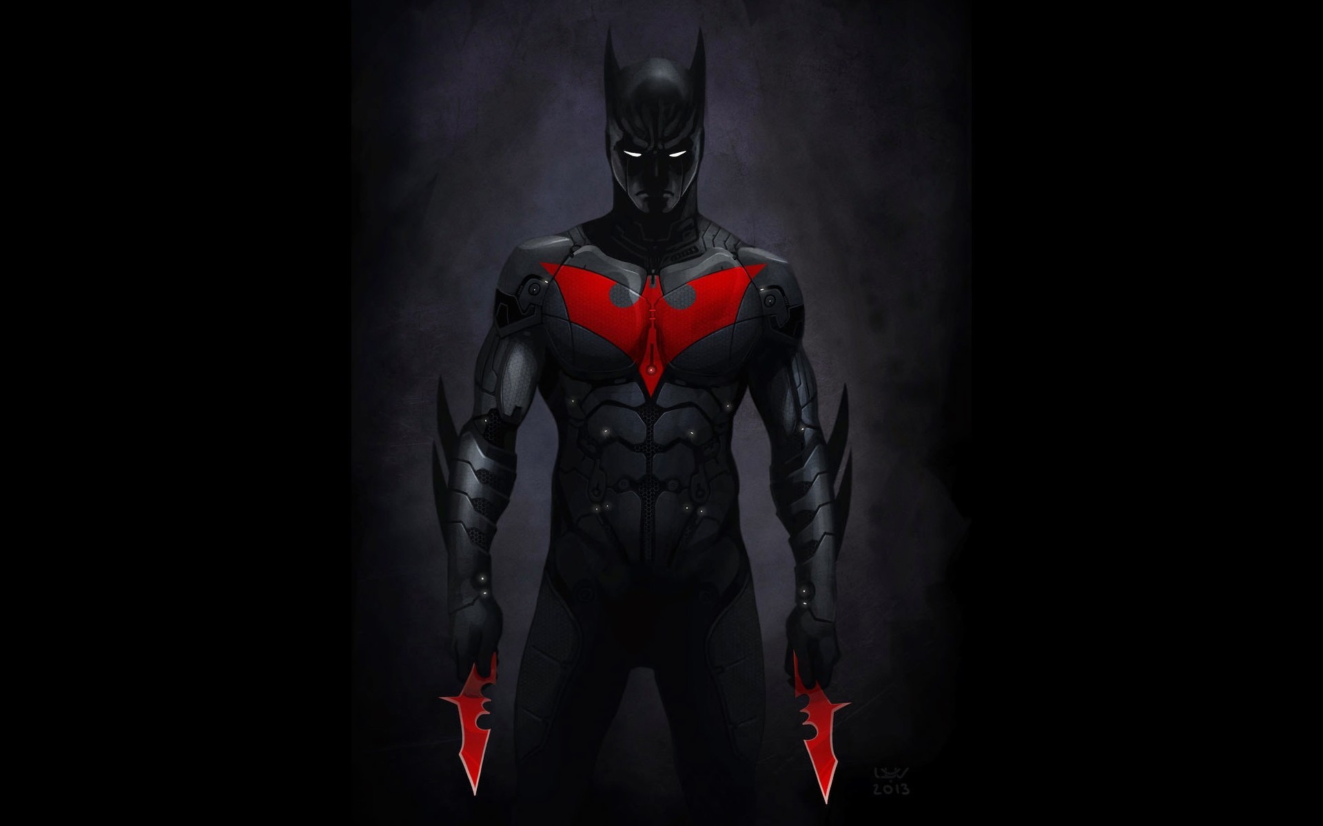 Красная летучая мышь на груди Бэтмана - 1920x1200