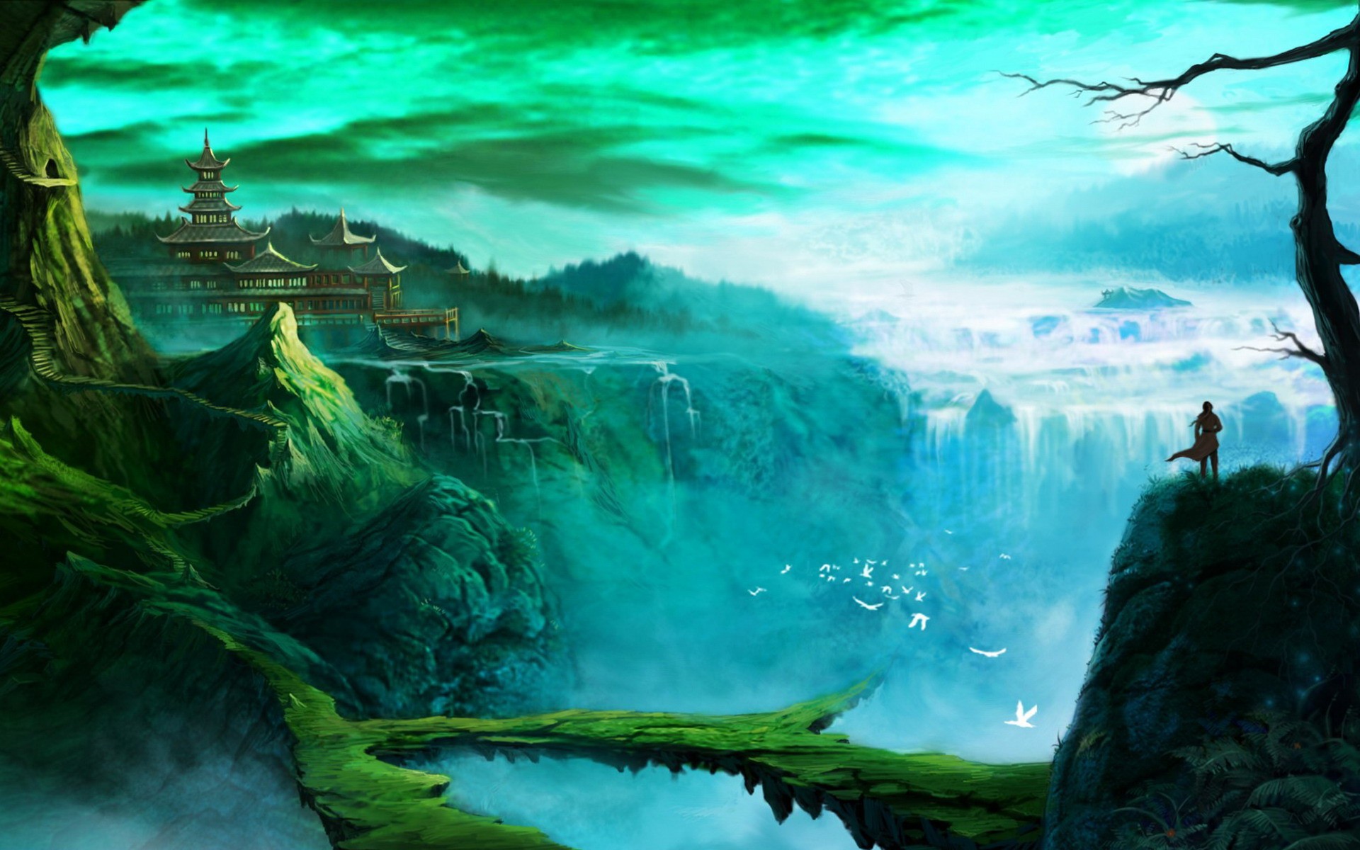Фантастический мир среди водопадов - 1920x1200