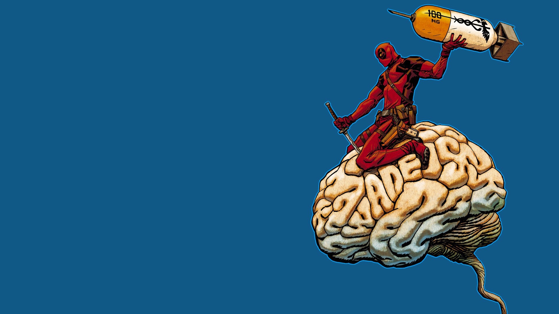 Обои: Дэдпул на мозге, голубой фон