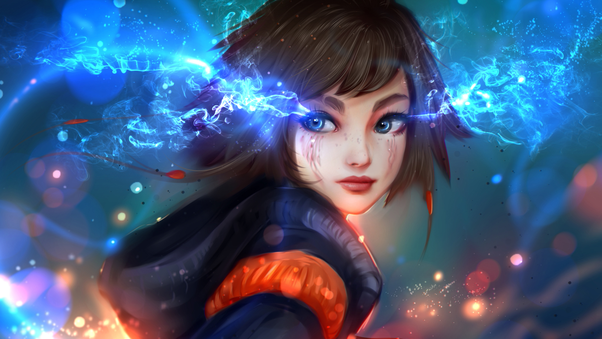 Фантастическая голубоглазая девушка аниме - 2560x1440