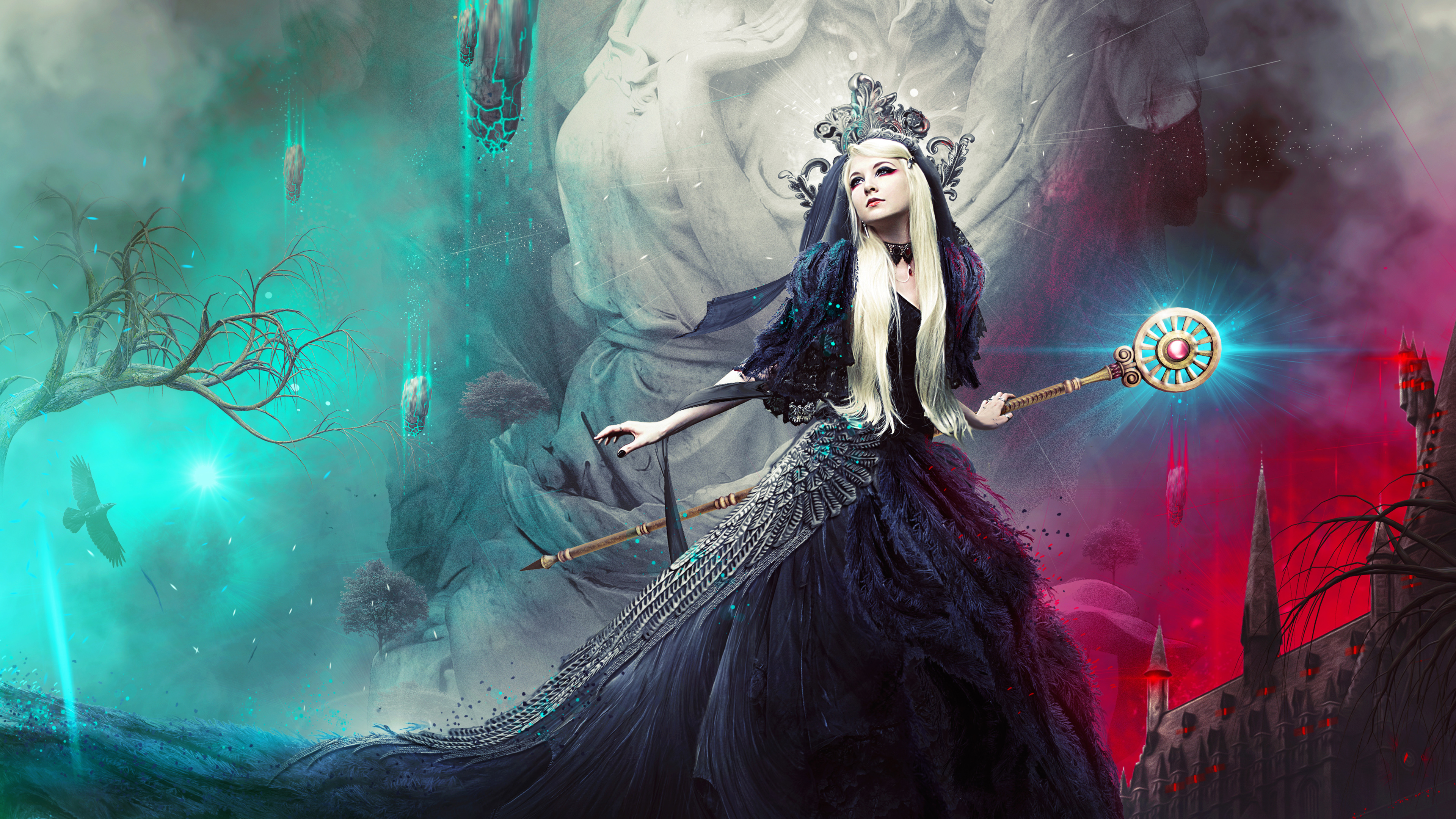 Девушка фантастический ангел в красивом черном платье - 3840x2160