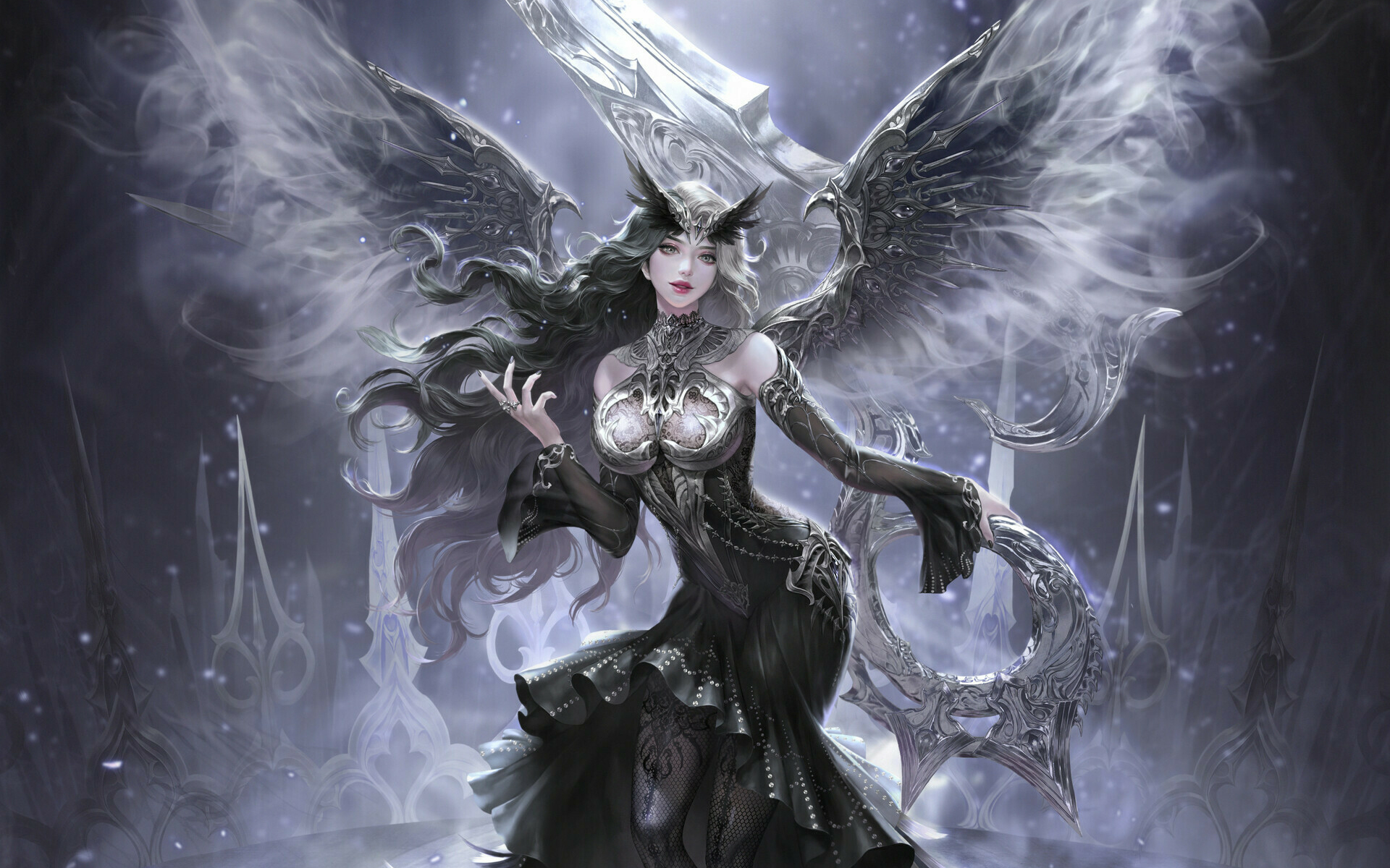 Фантастическая девушка в красивом черном платье - 1920x1200