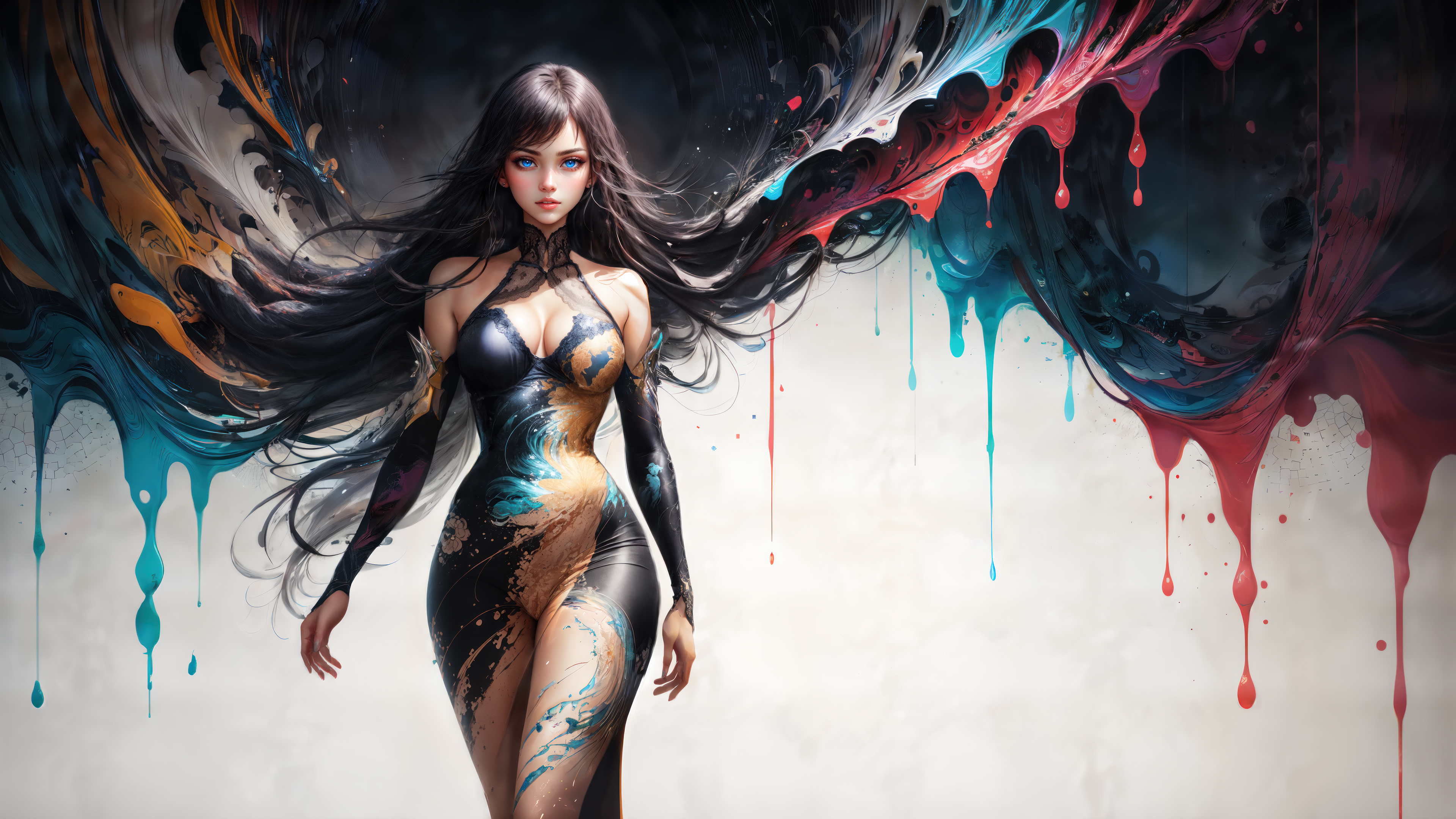 Красивая фантастическая девушка в краске - 3840x2160
