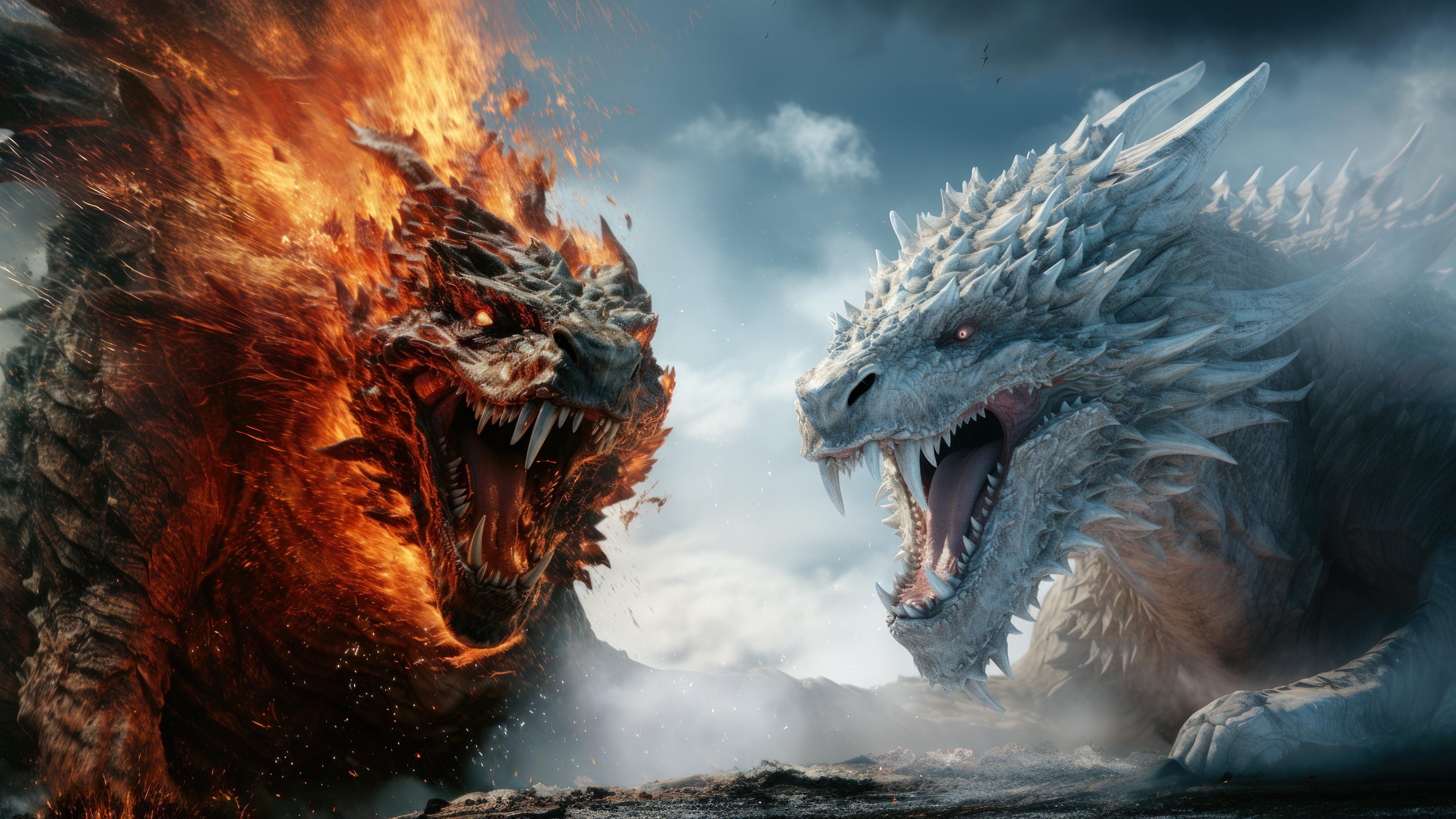 Огненный и ледяной драконы сошлись в битве - 3840x2160