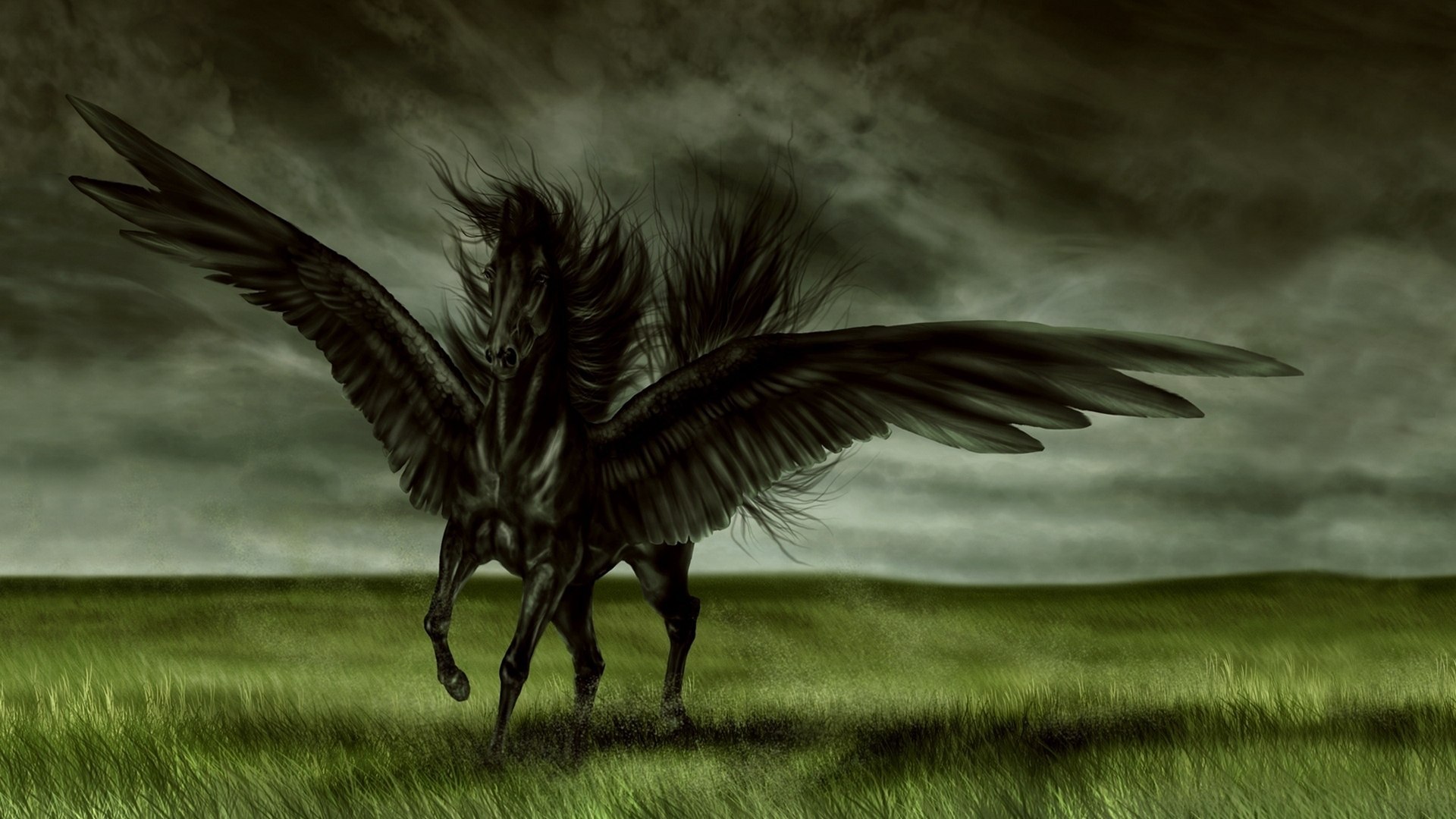 Черный крылатый конь Пегас - 1920x1080