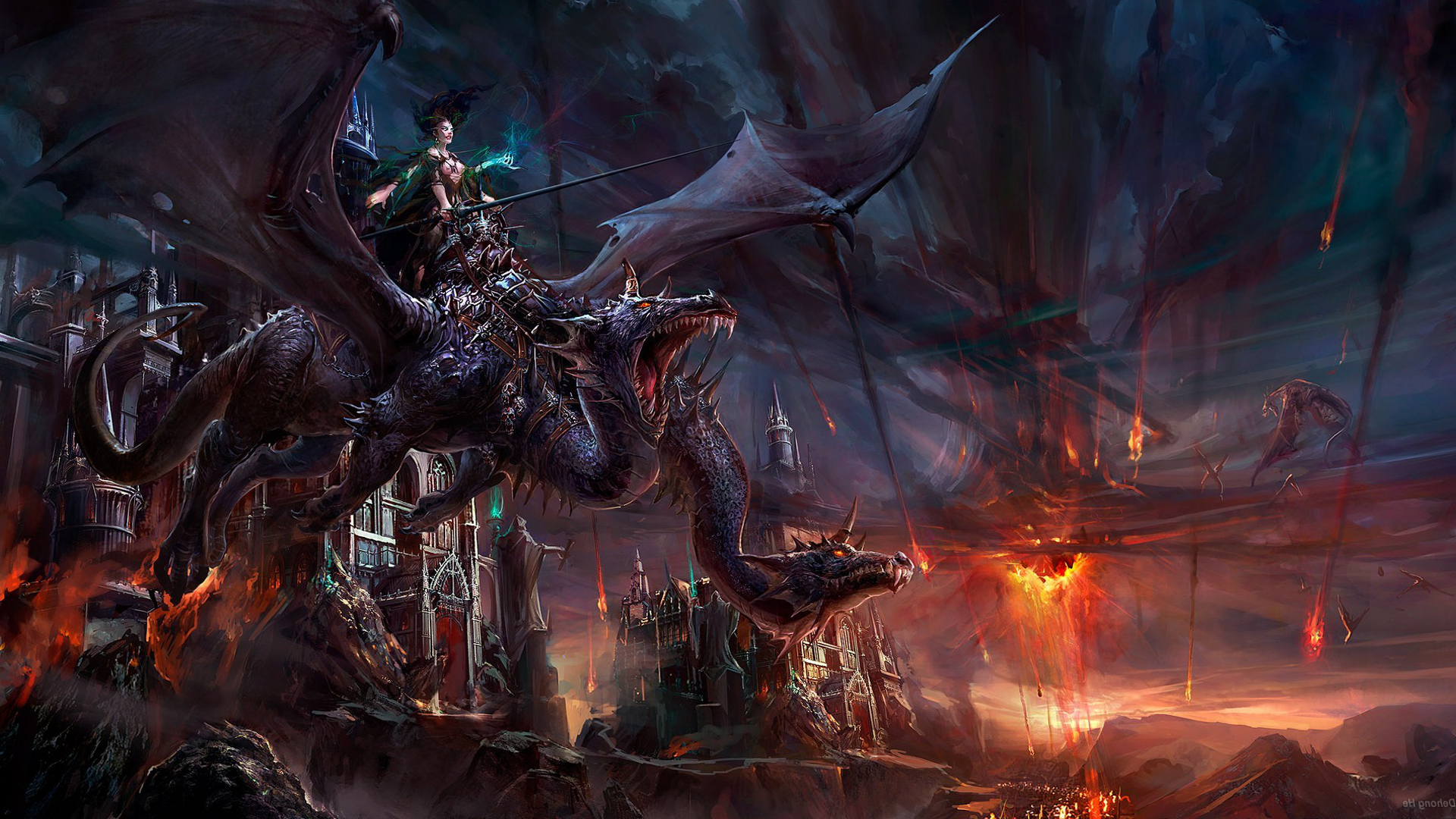 Обои: Чародейка оседлала дракона, фэнтези