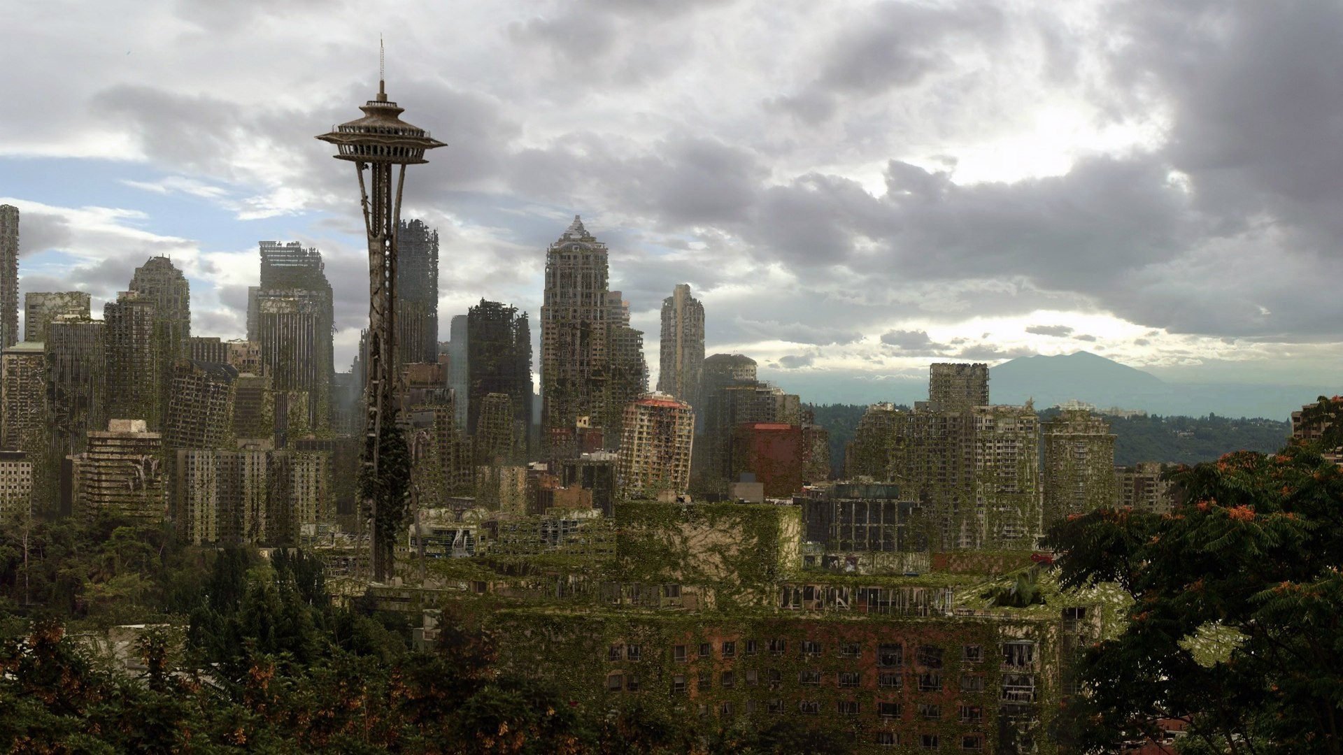 Поросшие зеленью руины Сиэтла - 1920x1080