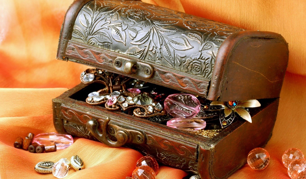 Деревянная шкатулка с драгоценными камнями Обои для рабочего стола 1024x600