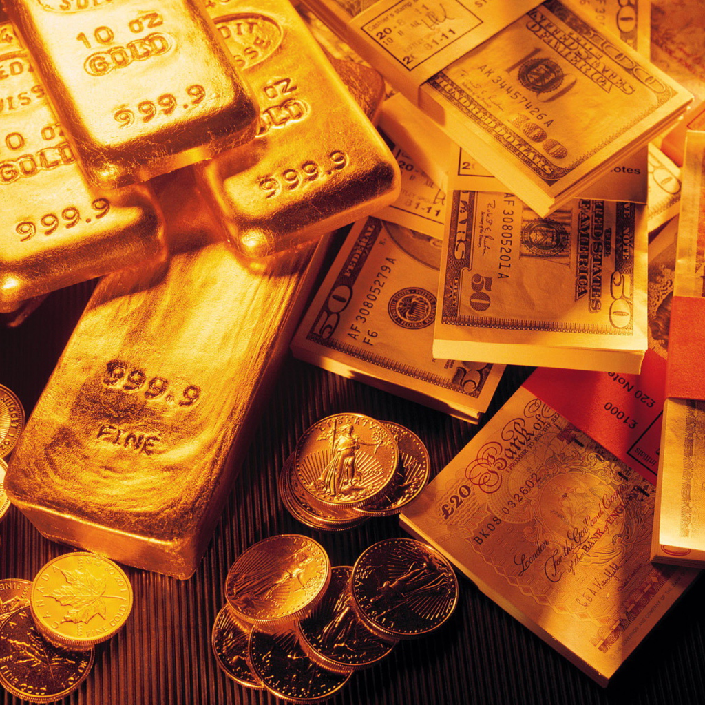 Золото и банкноты Обои для рабочего стола 1024x1024