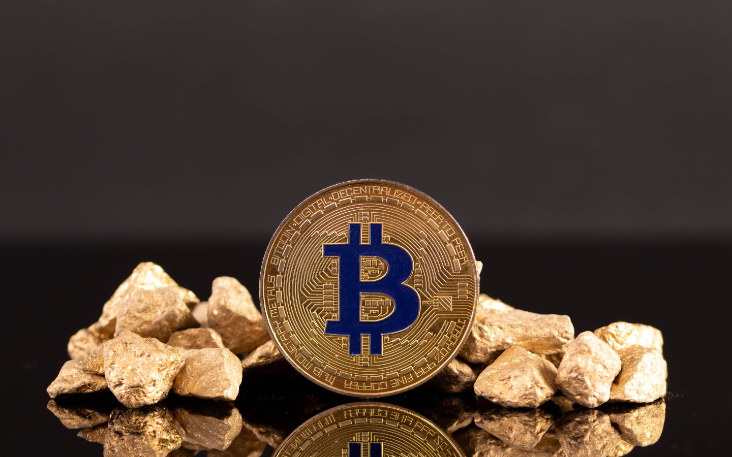 Монета биткоин с золотом на черном фоне Обои для рабочего стола 1440x900