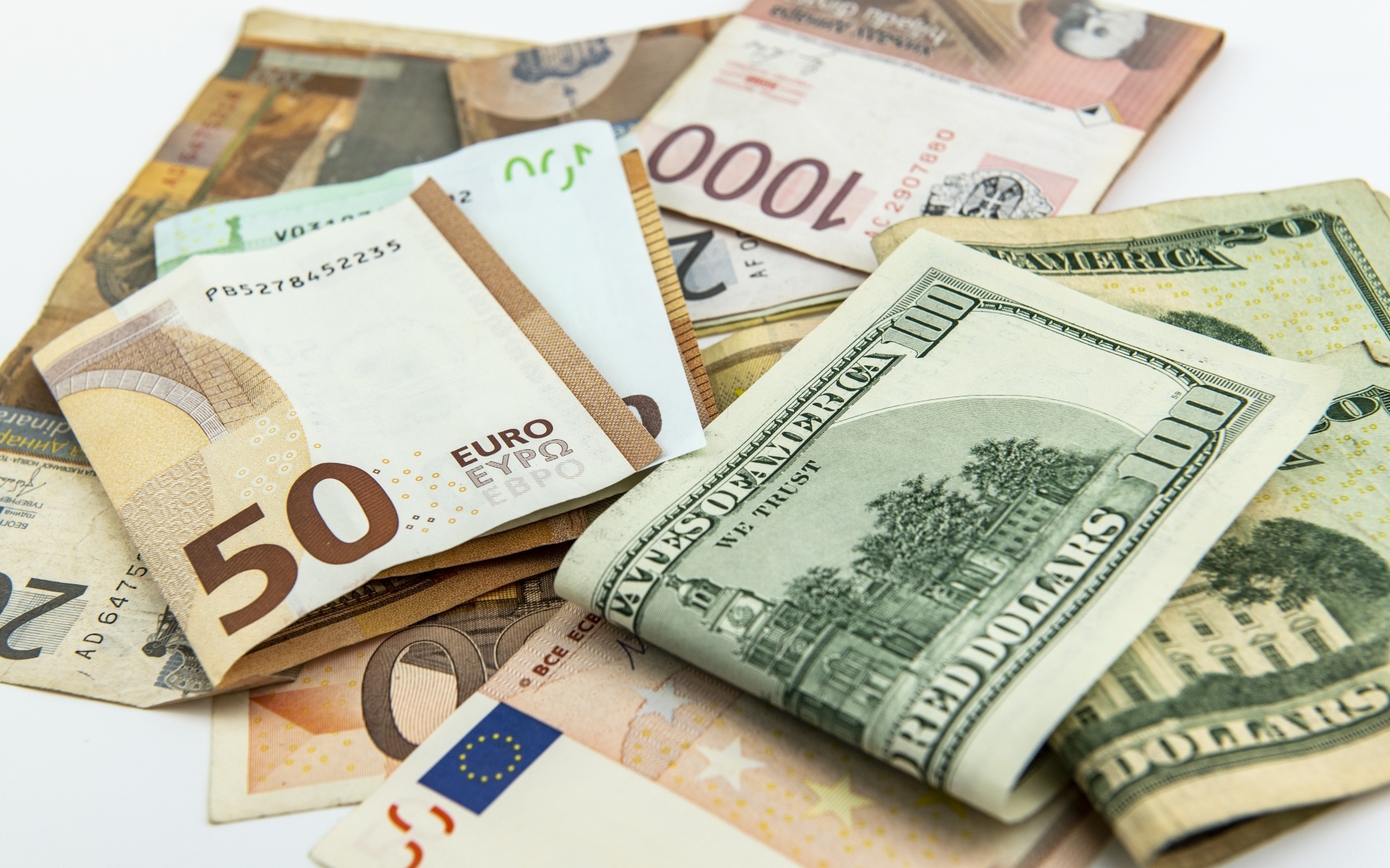 Много банкнот долларов и евро Обои для рабочего стола 1920x1200