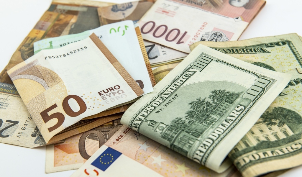 Много банкнот долларов и евро Обои для рабочего стола 1024x600