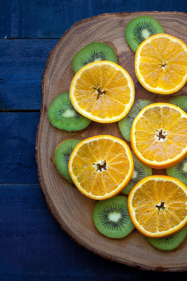 Кружочки киви с апельсинами на доске Обои для рабочего стола 640x960