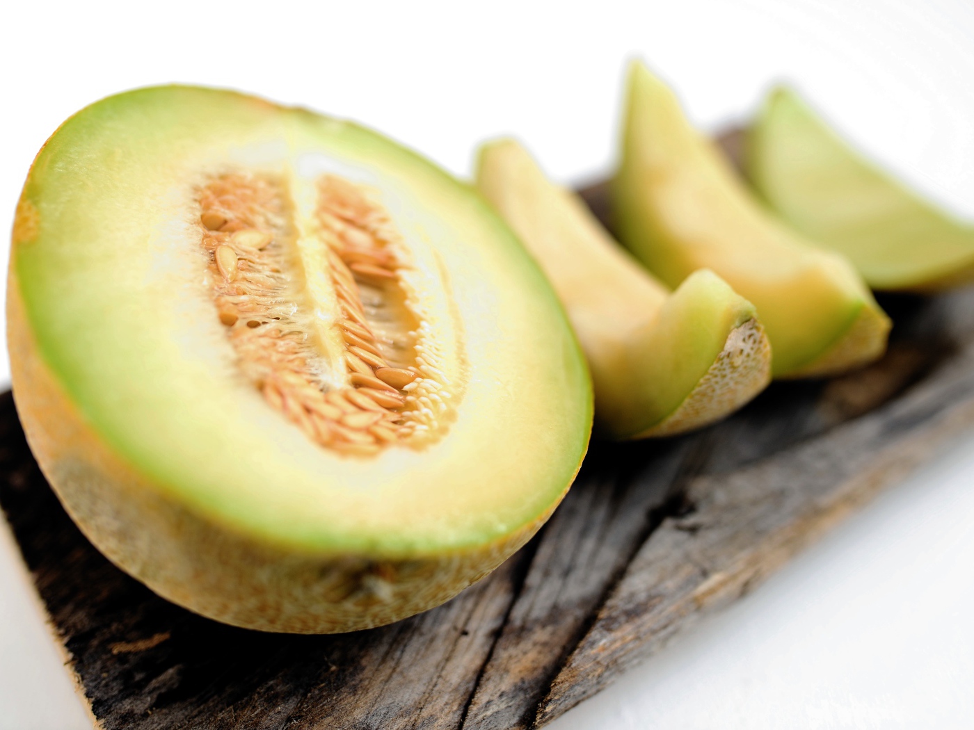 Свежая сочная дыня на белом фоне Обои для рабочего стола 1400x1050