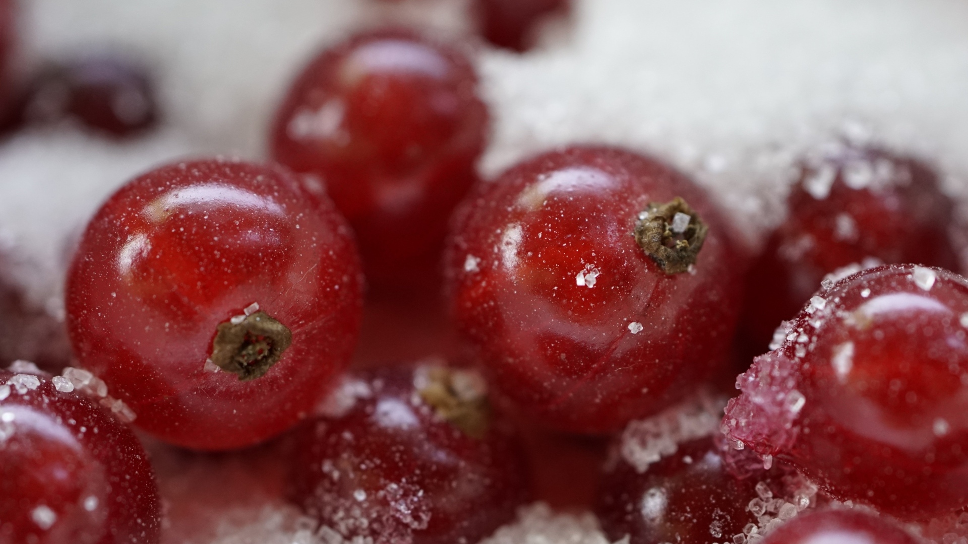 Красные ягоды смородины в сахаре Обои для рабочего стола 1920x1080