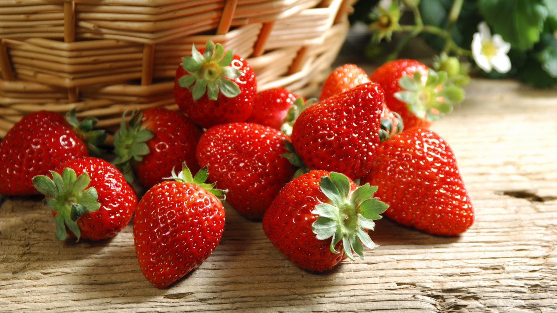 Клубника и корзинка Обои для рабочего стола 1920x1080