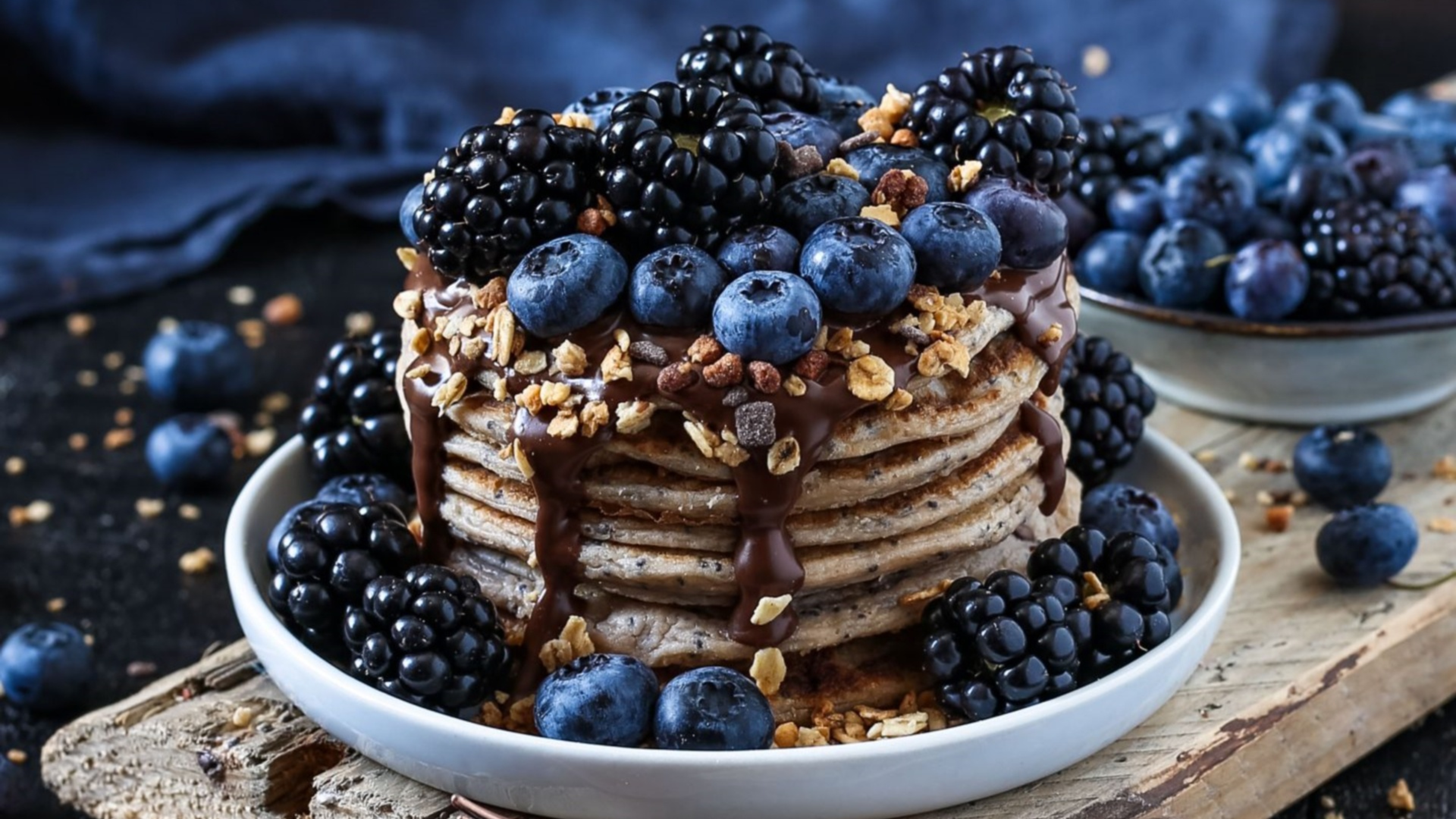 Панкейки с ягодами черники и ежевики - 3840x2160