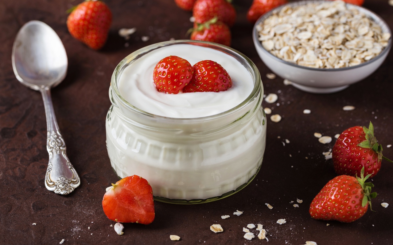 Йогурт со свежей клубникой и овсяными хлопьями Обои для рабочего стола 1280x800