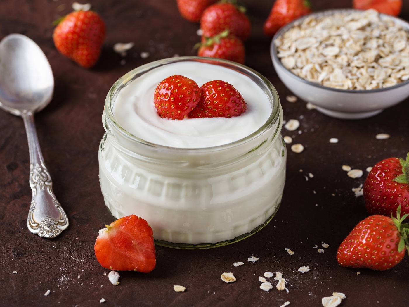 Йогурт со свежей клубникой и овсяными хлопьями - 8000x5341
