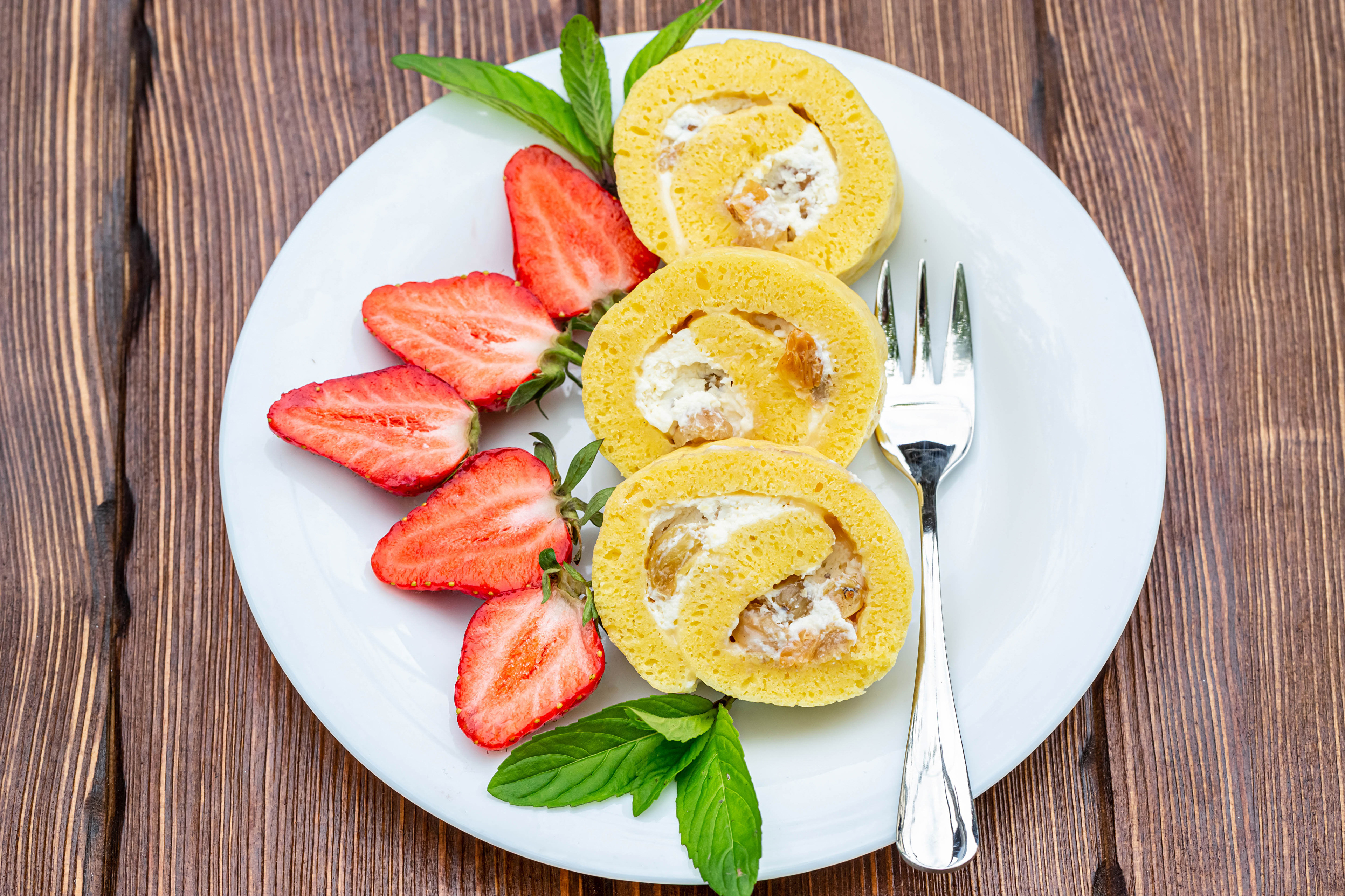 Бисквитный рулет с кусочками клубники - 3840x2560