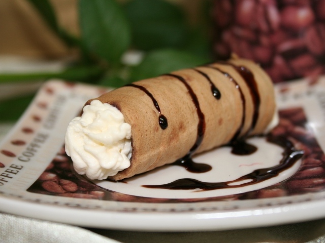 Обои: Сладкая трубочка с ванильным кремом на тарелке