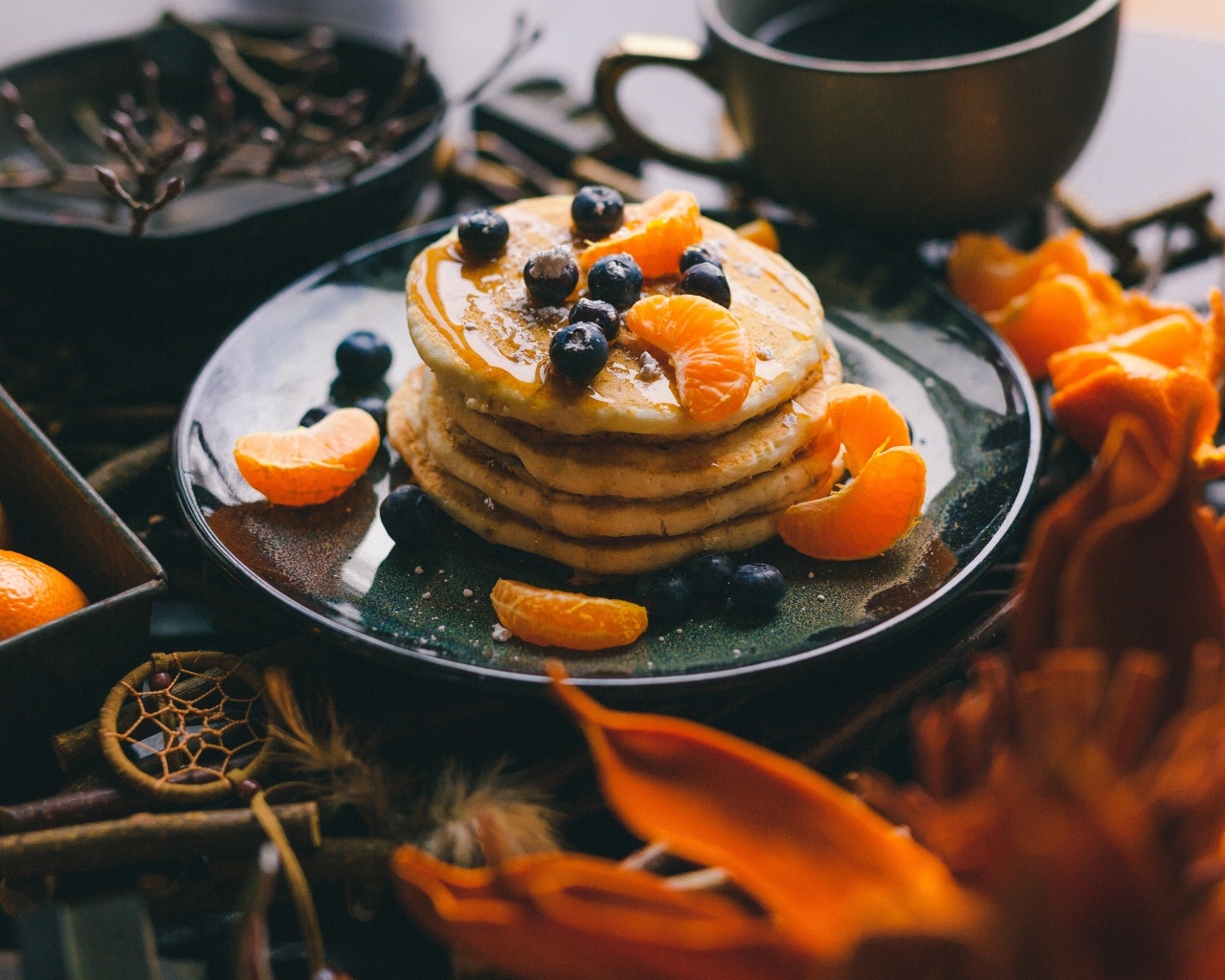 Оладьи с мандарином и ягодами черники Обои для рабочего стола 1280x1024